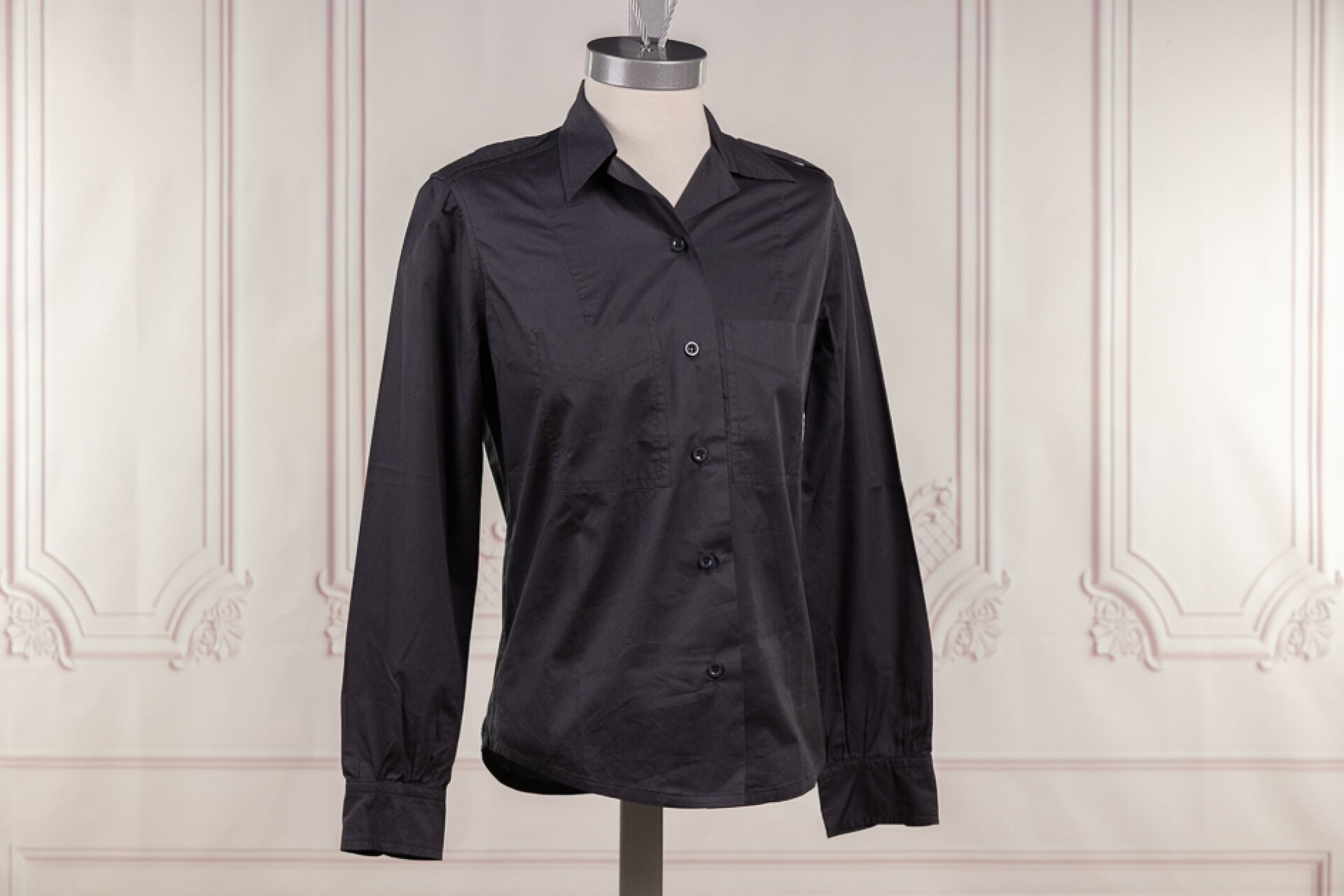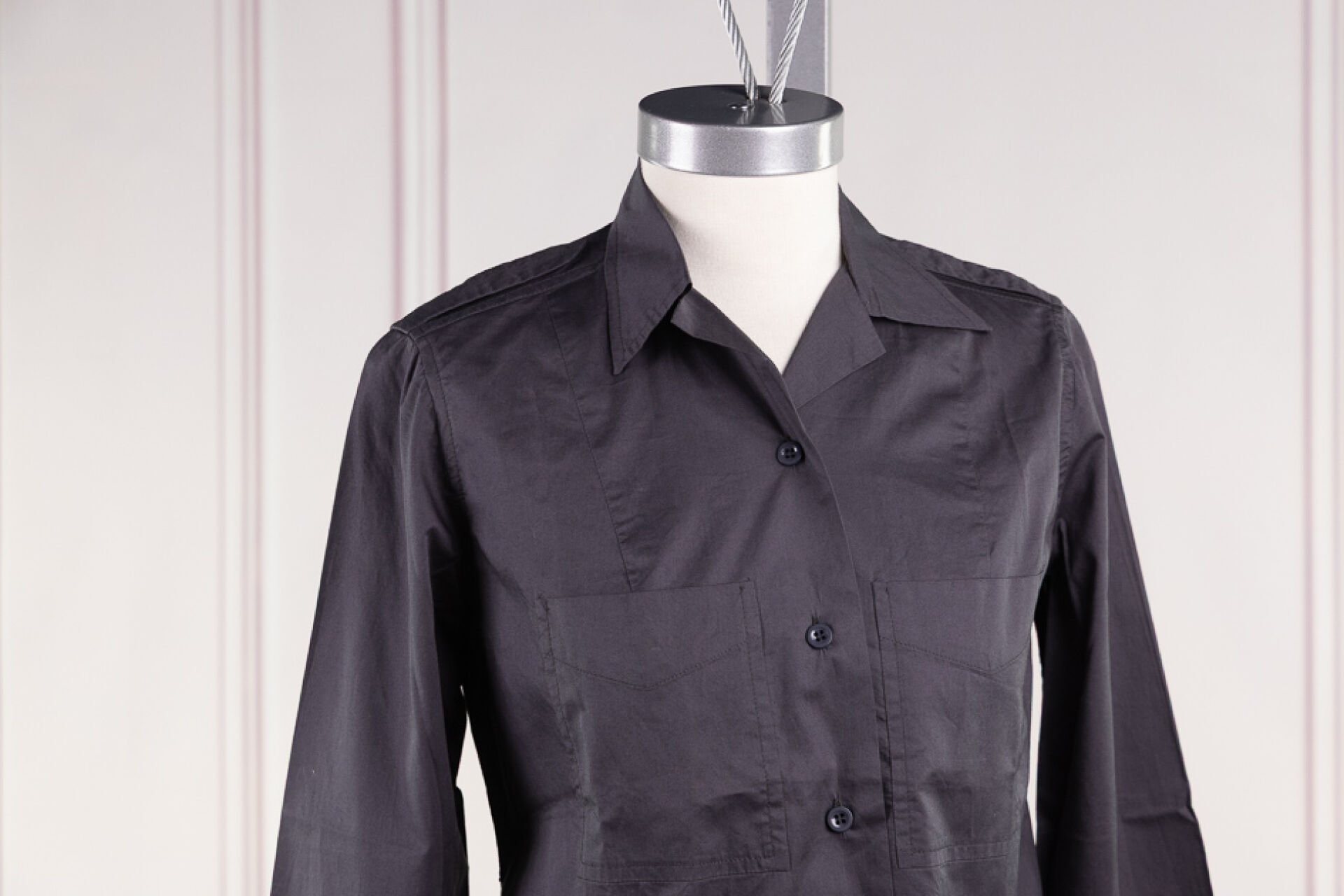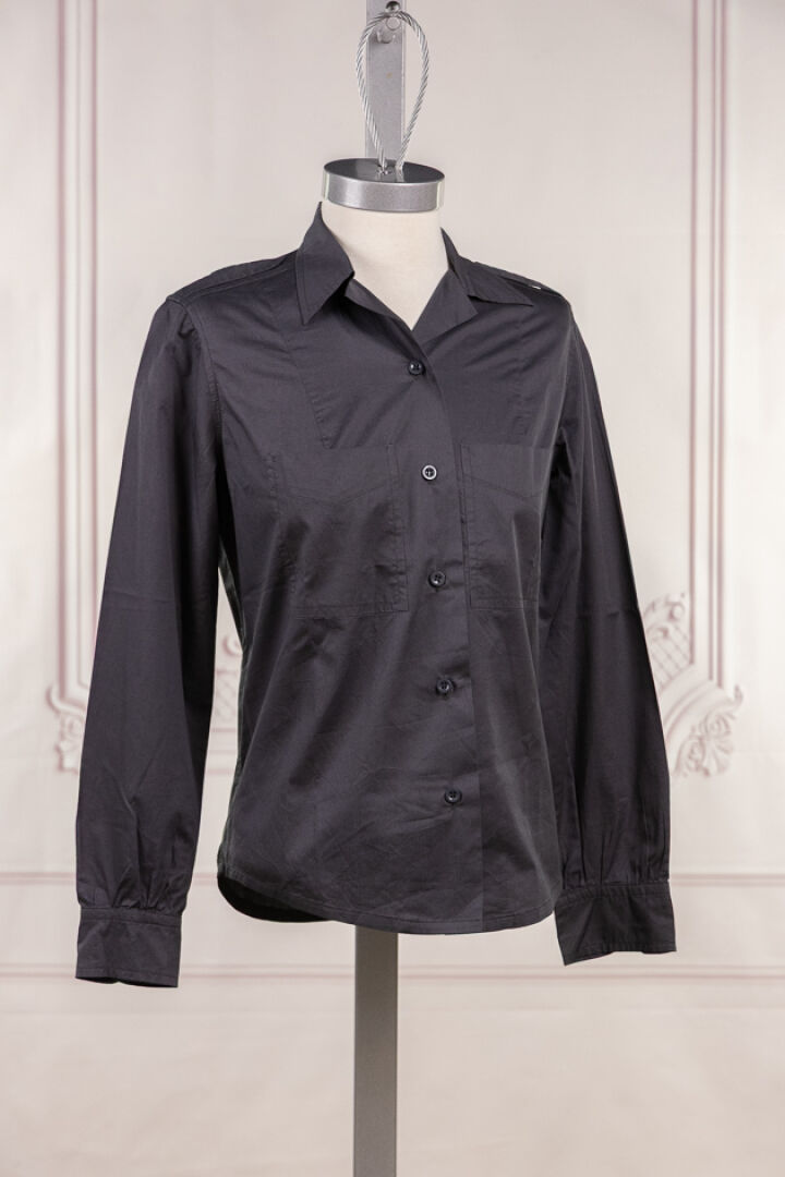 ISABEL MARANT Etoile - Chemisier en coton gris anthracite, manches longues, deux poches poitrine plaquées, pattes d'épaule. Taille 1 Bon état