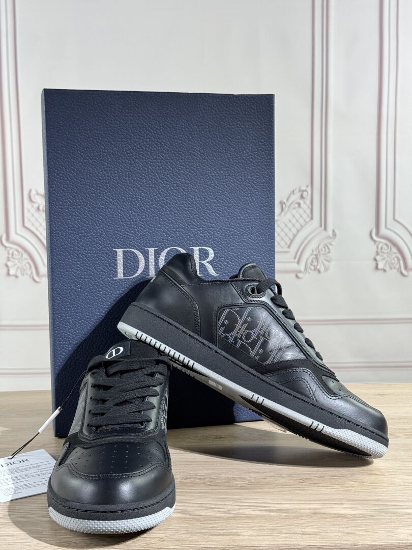 DIOR - Paire de baskets en cuir noir, siglées, lacets. Dans leur boite. Pointure 43 Non portées