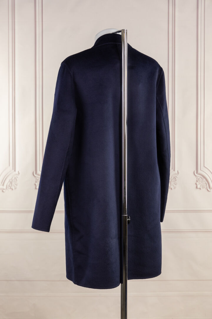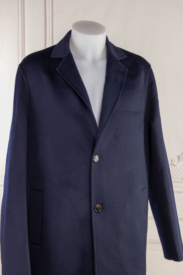 ERIC BOMPARD - Manteau Homme en cachemire marine, col cranté, simple boutonnage, deux poches verticales, manches longues, fente dos. Taille L État neuf, étiquette d'origine