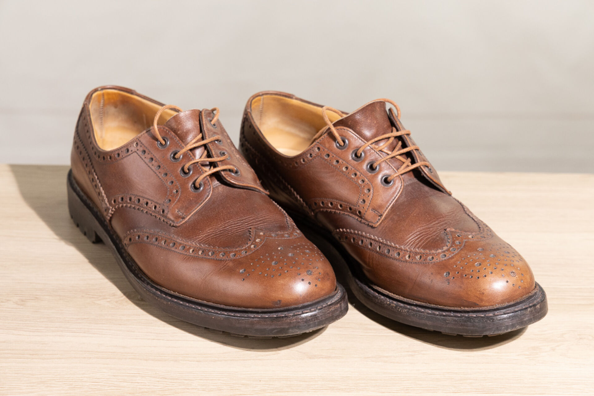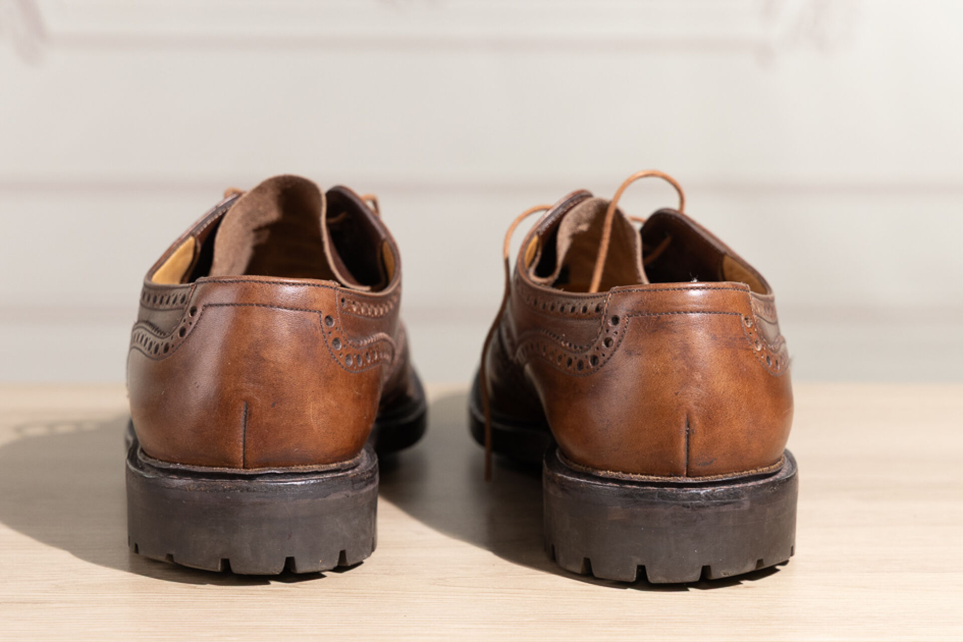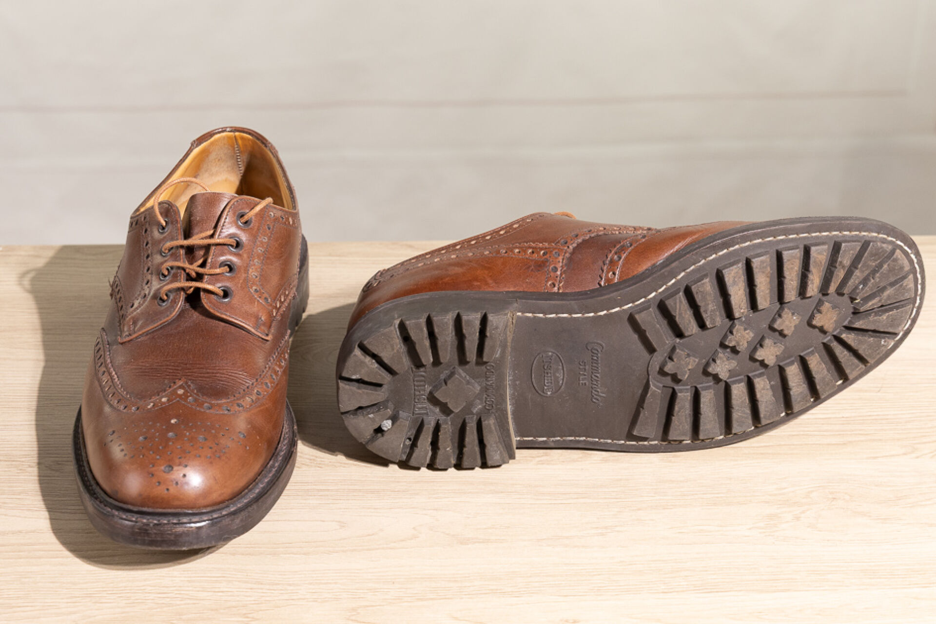 PRADA X CHURCH - Paire de chaussures homme en cuir marron à bouts fleuris et lacets sur semelles crantées comando style. Pointure 10,5 Déjà porté