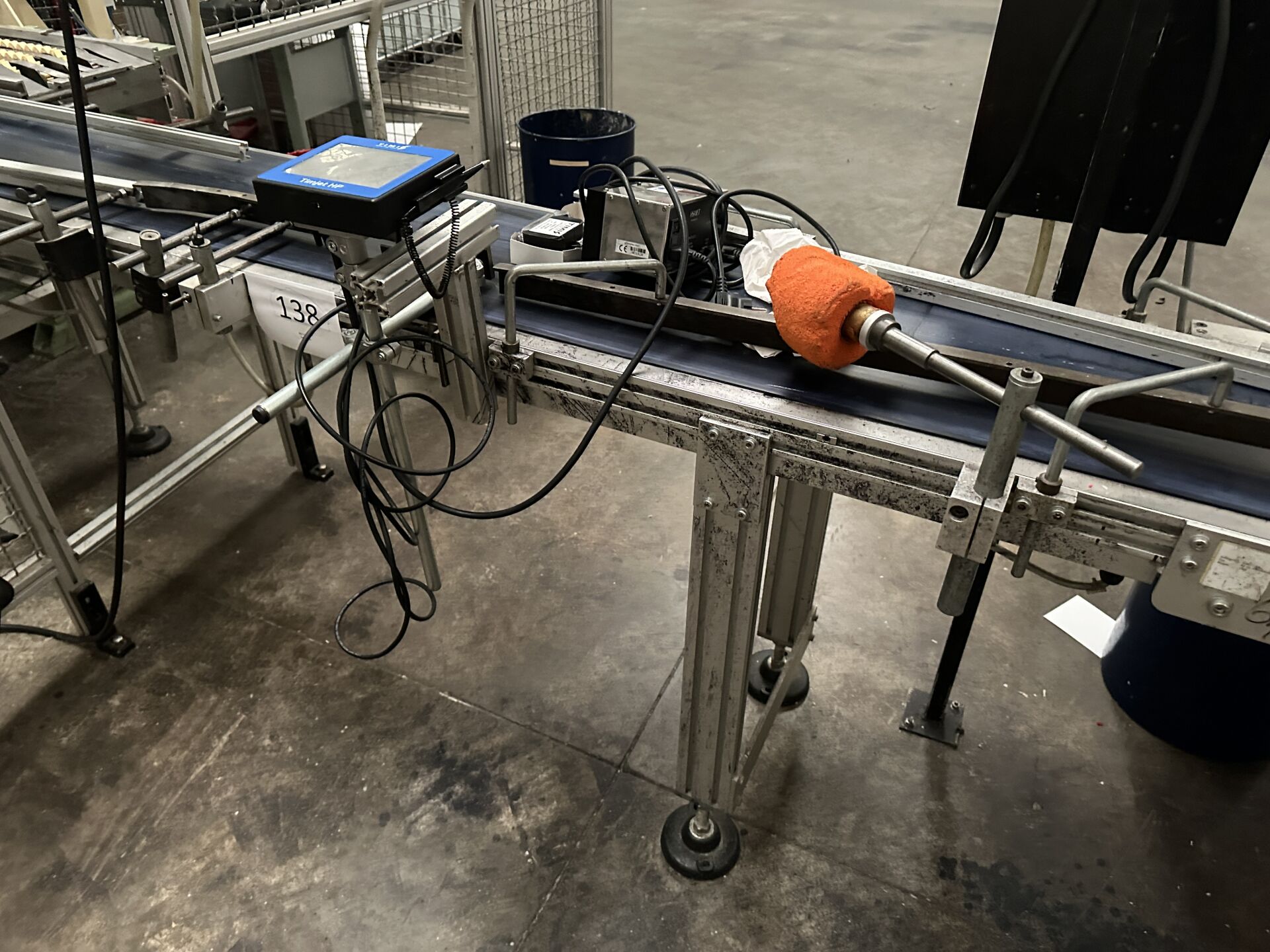 Vendu sur désignation le 04 11 2025 à 10h à NANTES, 24 rue du marché commun, visible le 03/11/2025 de 14h à 16h à GETIGNé, Enlèvement jusqu'au 19 décembre 2025 HALL 4 - (partie de la chaine de production de "bougies ménage" HERRHAMMER) : -1 imprimante jet d'encre TIM JET HP à cartouche TIMIS sur convoyeur à bande longueur 300 cm (frais de mise à disposition 50 € TTC)