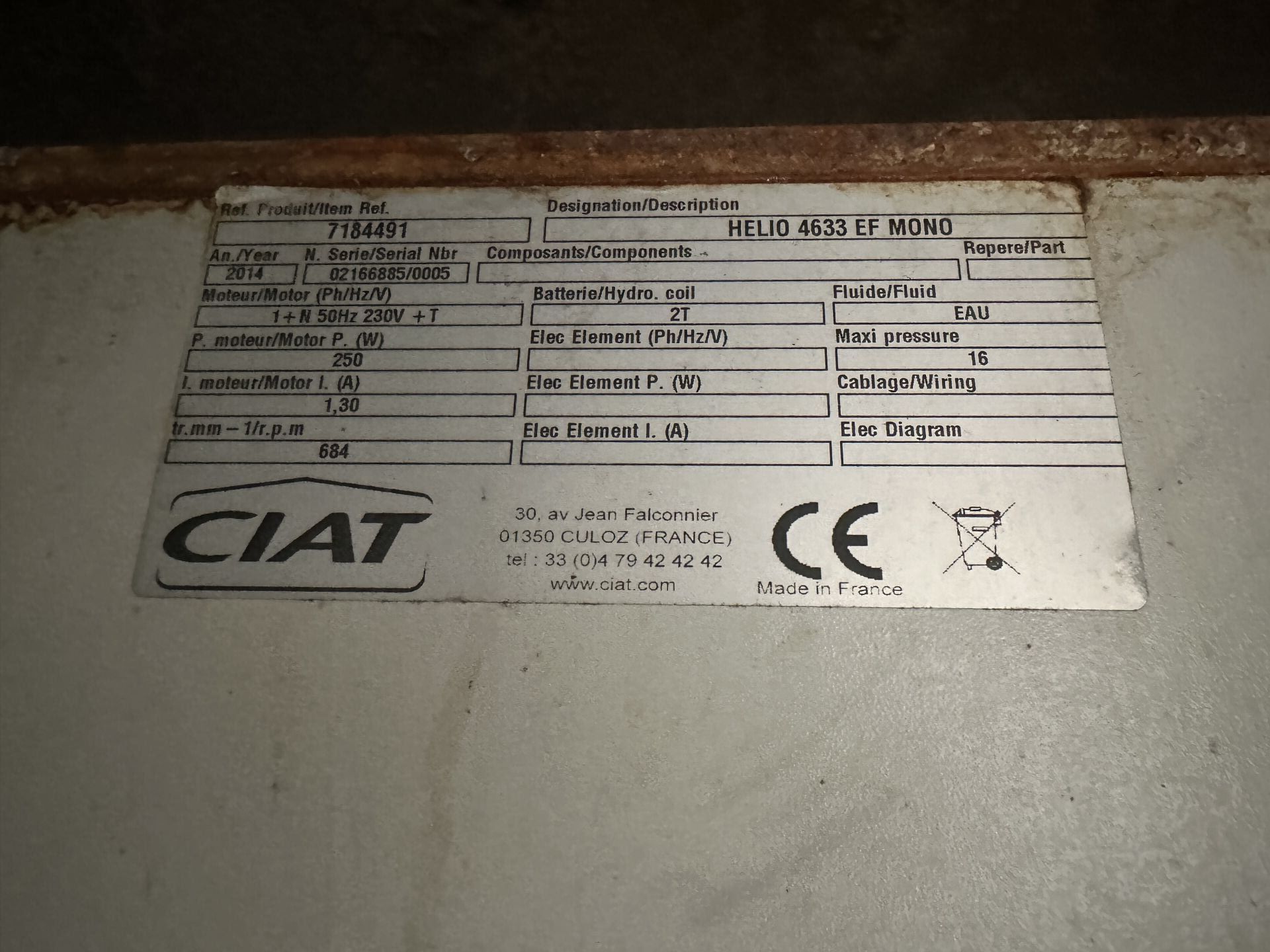Vendu sur désignation le 04 11 2025 à 10h à NANTES, 24 rue du marché commun, visible le 03/11/2025 de 14h à 16h à GETIGNé, Enlèvement jusqu'au 19 décembre 2025 HALL 6 : Sur 1 ligne de remplissage (LR2) HERRHAMMER - -1 caisson de refroidissement 2500 x 3500 mm x 2100 mm avec 1 porte KIDE, avec 2 aérothermes CIAT HELIO 4633 EF MONO (frais de mise à disposition 150 € TTC)