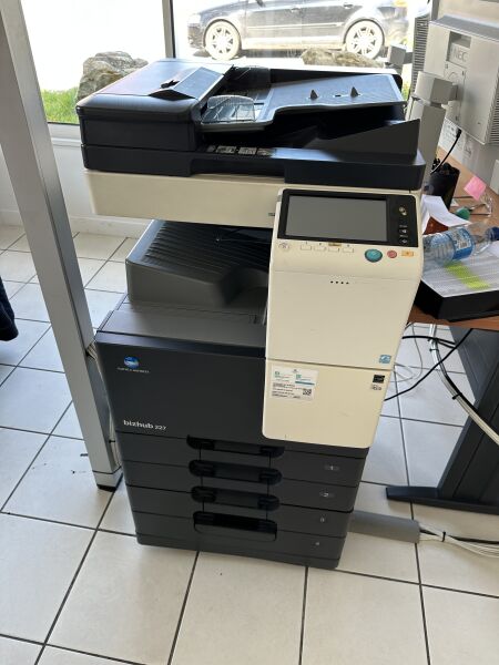 Vendu sur désignation le 20 11 2025 à 10h 24 rue du marché commun à NANTES, visible le 19/11/2025 sur RDV à 15h (STEM) à MONTOIR DE BRETAGNE, Enlèvement le 27 11 2025 à 9h, Frais de mise à disposition 10 € TTC par lot 1 copieur KONICA MINOLTA Bizhub 227 NS : A7AK021024444