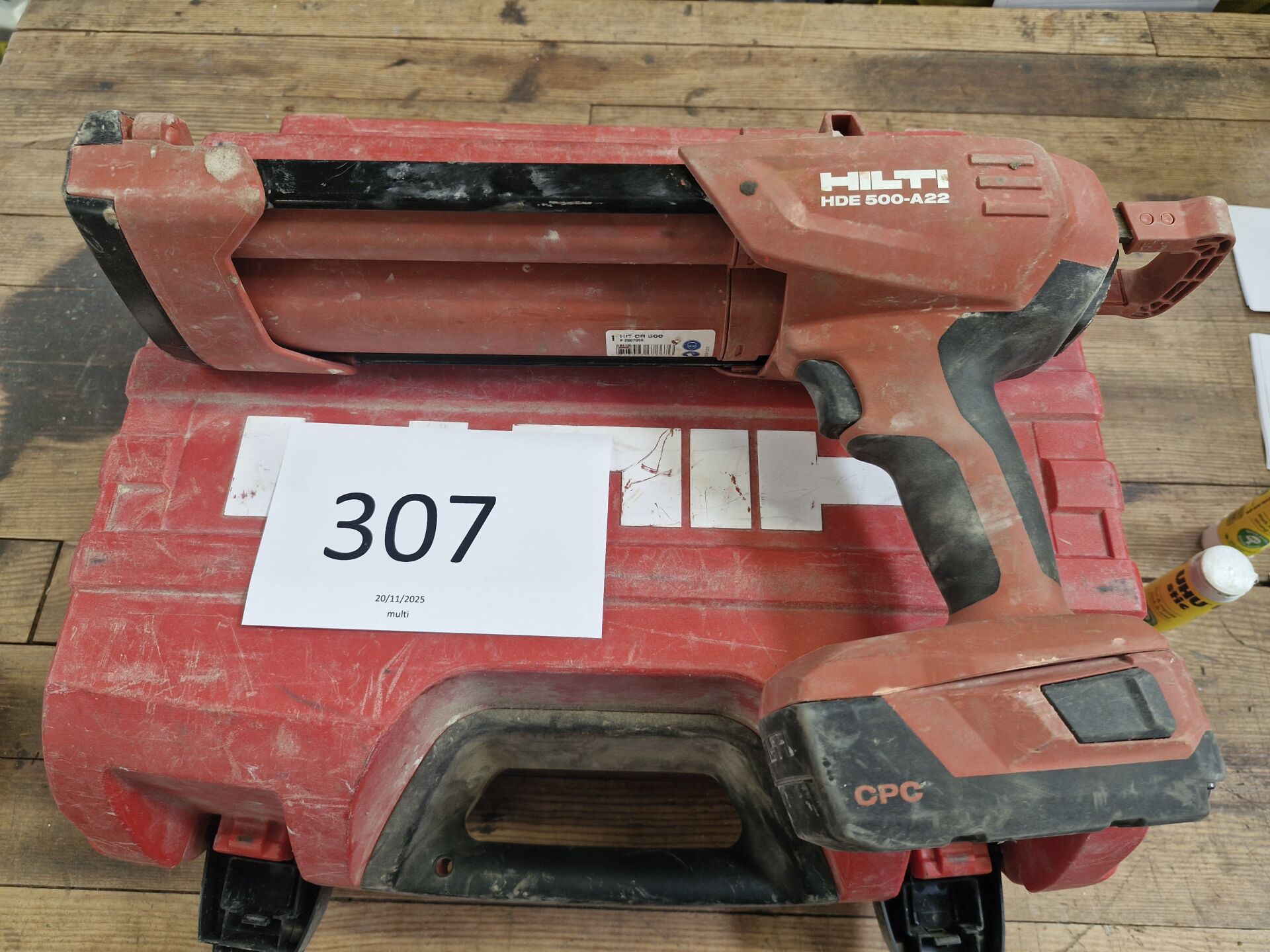 1 pistolet à scellement autonome HILTI HDE 500-A22 N/S:154583 de 2022, 1 batterie en coffret, mise sous tension le 21/10/25, expédition possible pour 38,93€