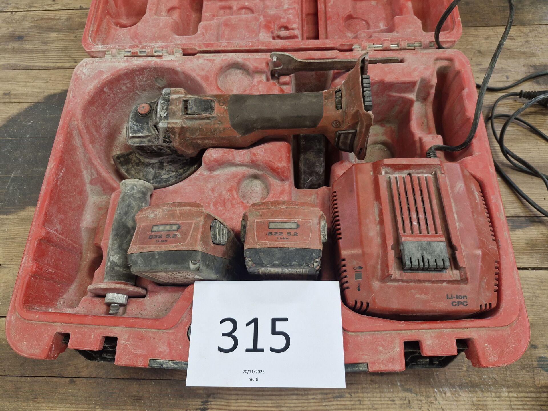 1 meuleuse d'angle autonome HILTI AG 45-A22-125 N/S:191042 DE 2021 2 batteries, 1 chargeur en coffret, mise sous tension le 21/10/25, expédition possible pour 41,90€