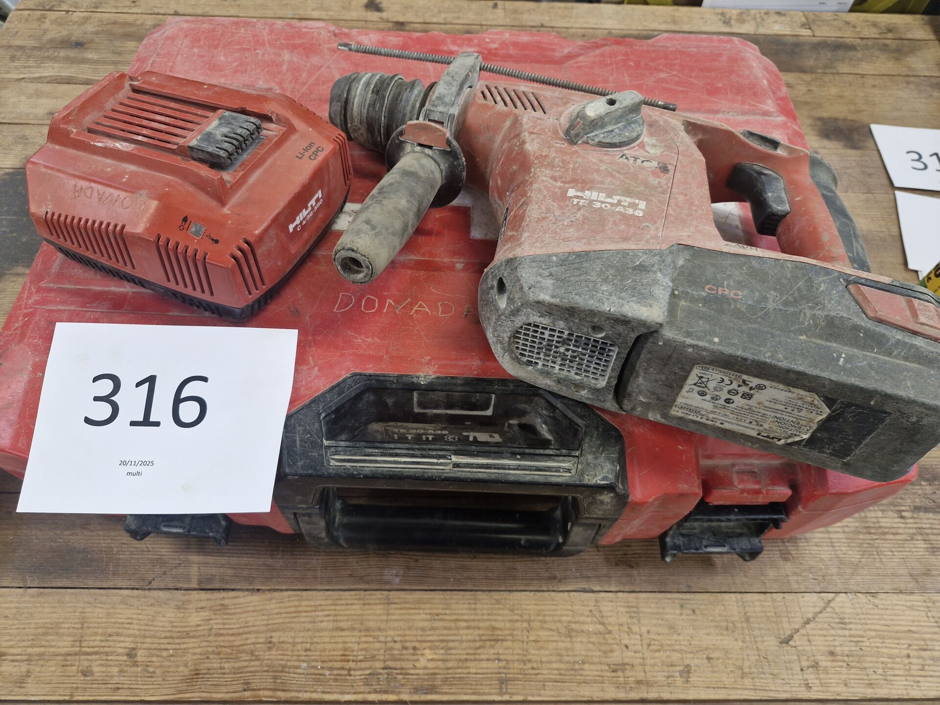 1 perforateur autonome HILTI TE 30-A36 N/S:161767 1 batterie 36V 1 chargeur en coffret, mise sous tension le 21/10/25, expédition possible pour 45,97€
