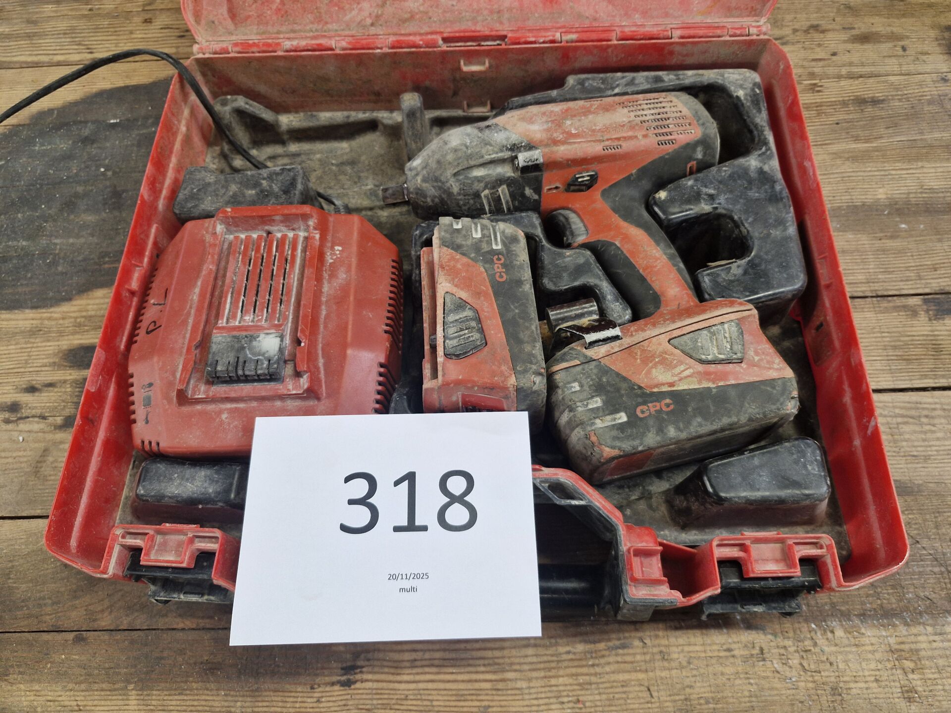1 boulonneuse autonome HILTI SW 22T-A N/S illisible 2 batteries, 1 chargeur en coffret, mise sous tension le 21/10/25, expédition possible pour 41,90€