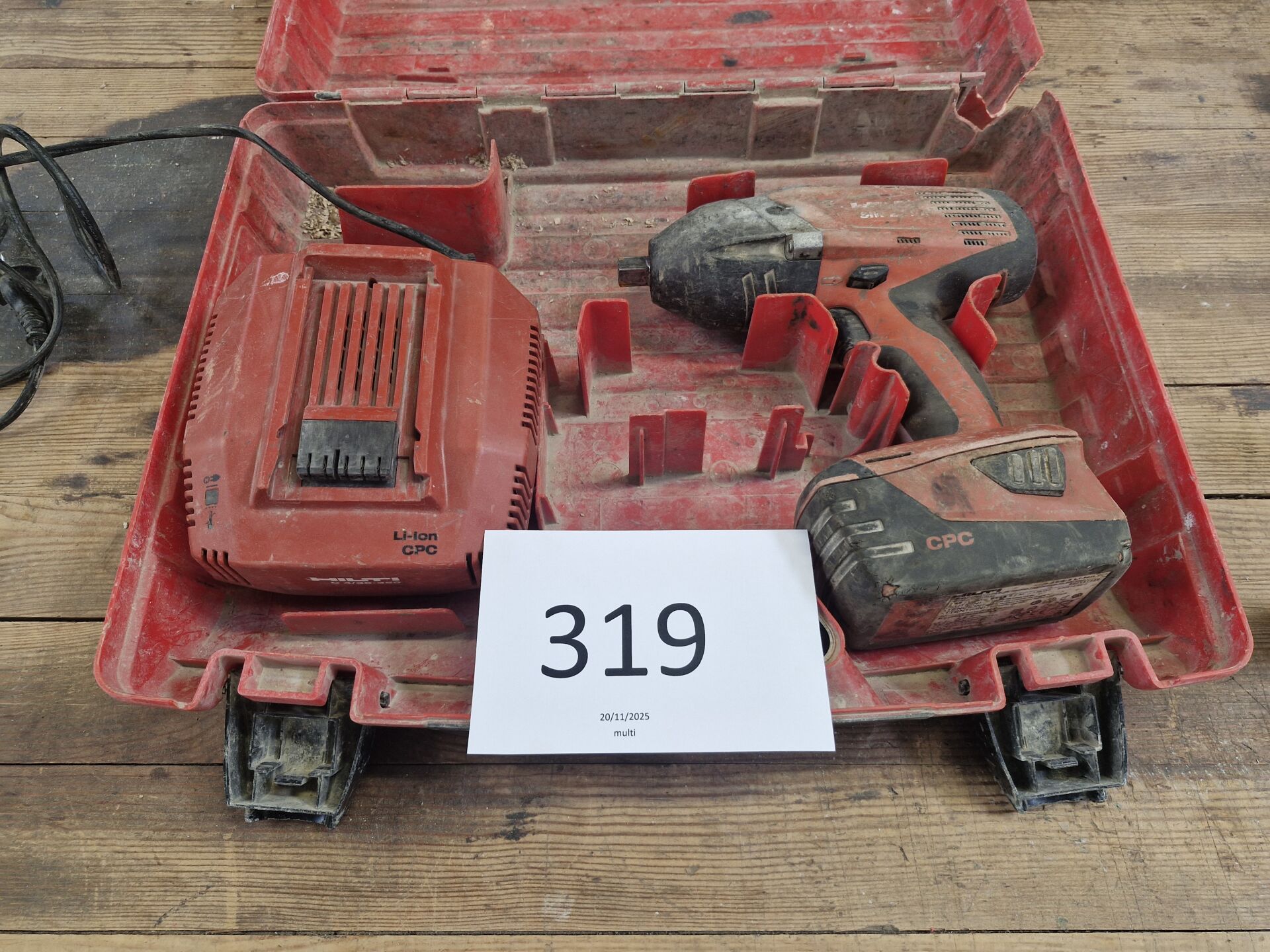 1 boulonneuse autonome HILTI SW 22T-A N/S:7858673 1 batteries, 1 chargeur en coffret, mise sous tension le 21/10/25, expédition possible pour 41,90€