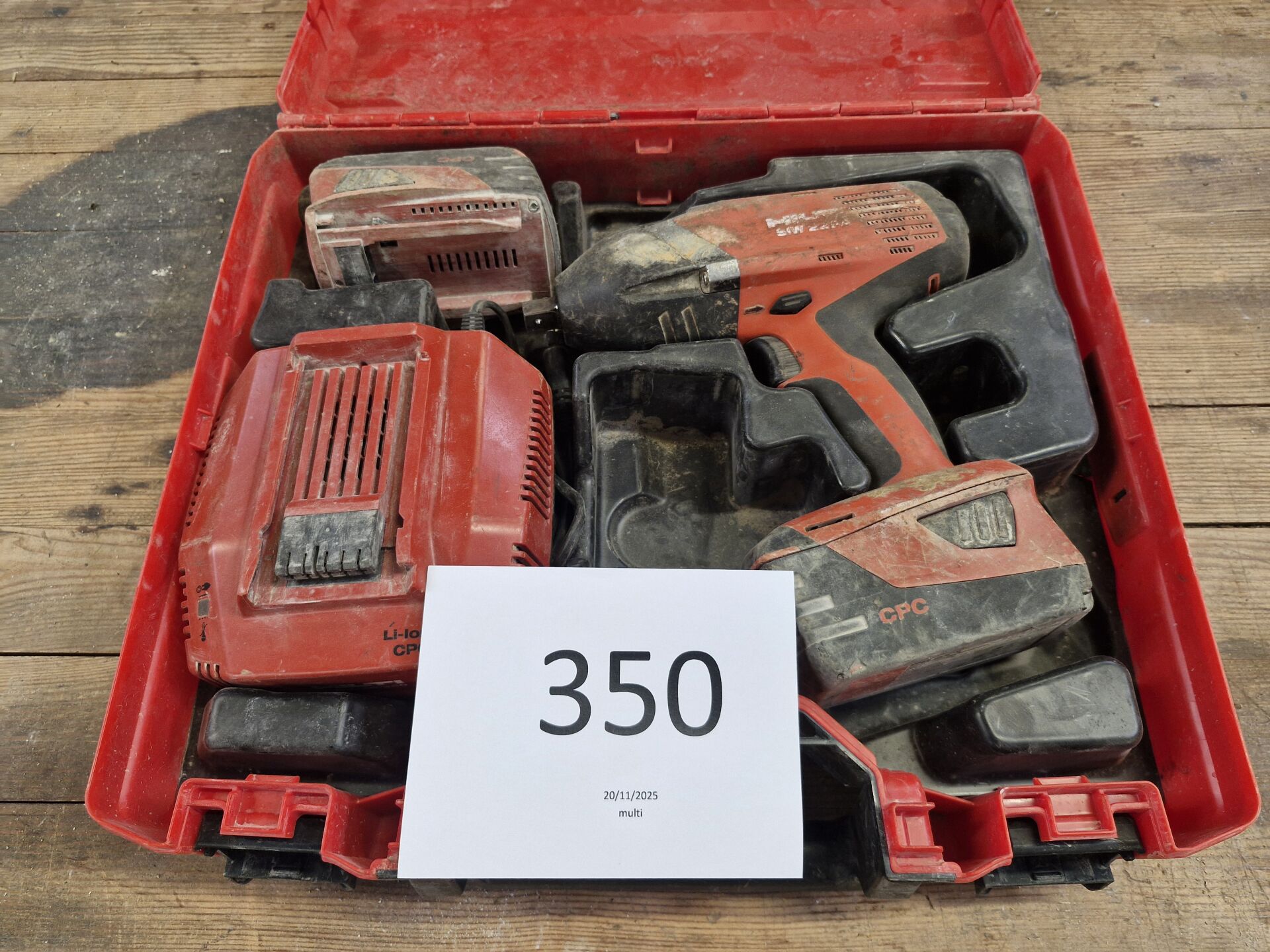 1 boulonneuse autonome HILTI SIW 22T-A N/S illisible, 2 batteries, 1 chargeur en coffret, mise sous tension le 21/10/25, expédition possible pour 41,90€