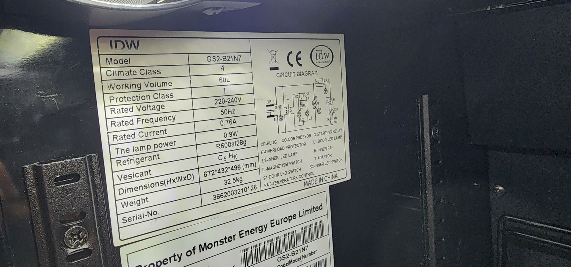 1 petite vitrine réfrigérée positive IDW GS2-B21N7 n°3662003210126 siglée MONSTER 44 X 50 X 66 cm