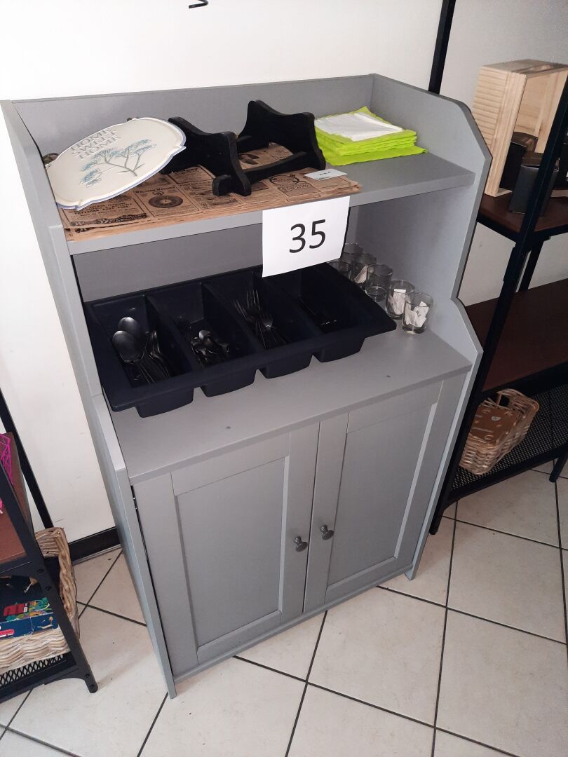 Desserte en bois laqué gris, ouvrant à 2 vantaux 117x70x46 cm