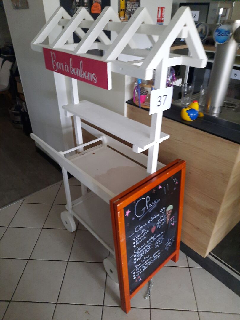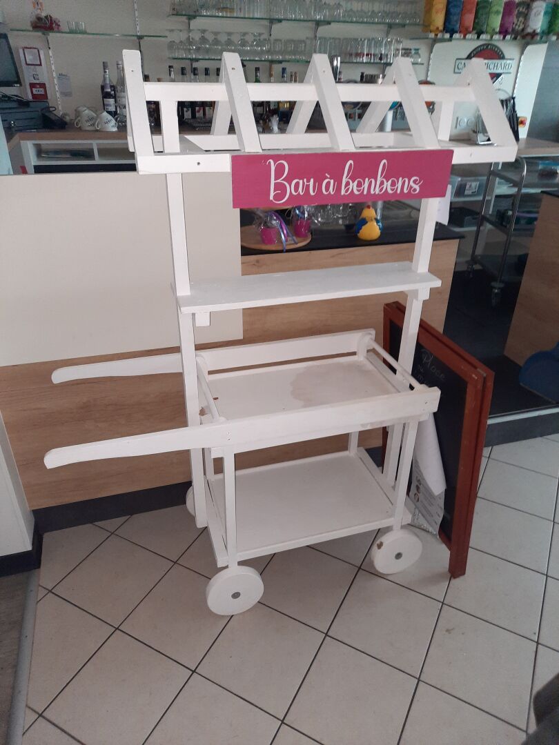 Chariot à bras en bois laqué blanc 110x160x47 cm Stop trottoir en bois naturel