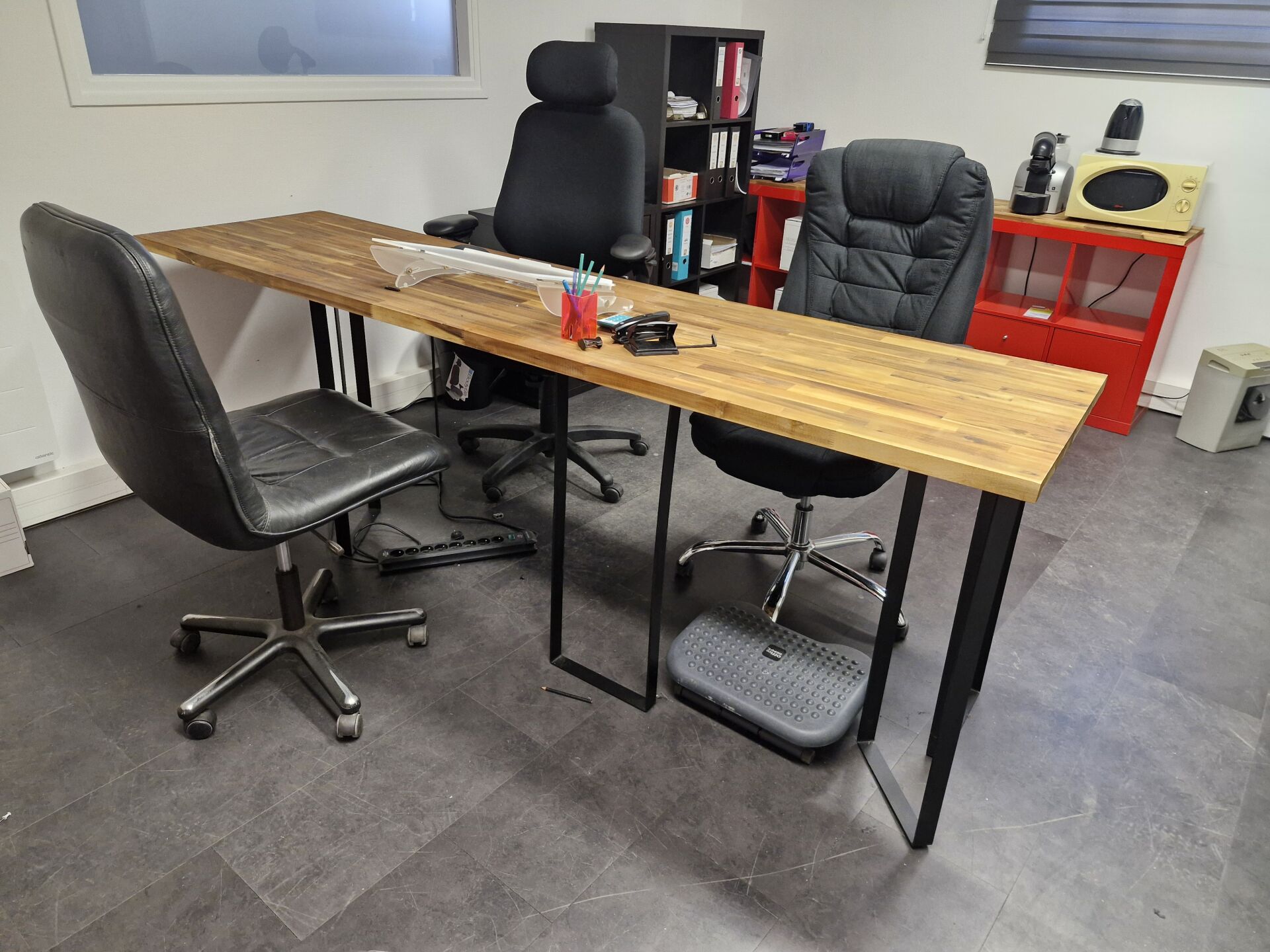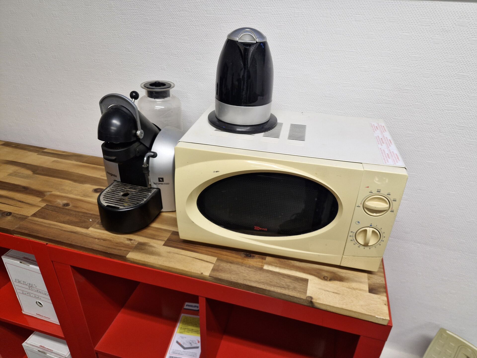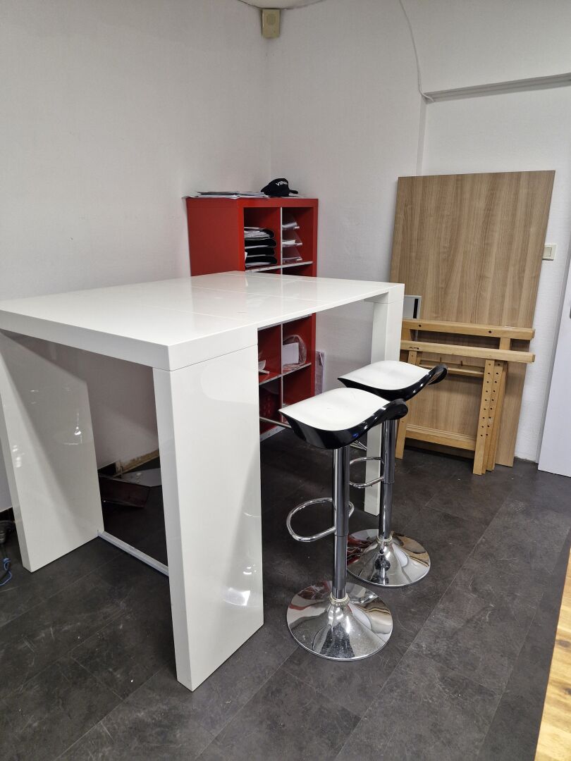 Vendu sur désignation le 15 12 2025 à 15h30, 24 rue du marché commun à Nantes, visible le 15/12/2025 sur RDV à 12h, enlèvement le 23/12/2025 de 9h à 13h, frais de mise à disposition 10 € TTC par lot 1 table haute mélaminé blanc brillant (138 x 102cm), 2 tabourets hauts plastique pied chromé, 1 plateau bois (65 x 250cm) avec pied métal formant bureau, 1 fauteuil tournant/roulant ergonomique, 1 fauteuil tournant/roulant, 1 chaise tournante/roulante 3 étagères 8 cases mélaminé rouge 80 x 40 x 150 cm 1 étagère 4 cases mélaminé rouge, 80 x 40 x 80 cm 1 étagère 8 cases mélaminé noir; 80 x 40 x 150 cm 1 étagère 4 cases mélaminé noir, 80 x 40 x 80 cm 2 casiers 4 tiroirs et 1 plateau mélaminé gris formant bureau, 150 x 56 cm 1 plateau mélaminé bois (80 x 160) et 2 tréteaux bois, l'ensemble formant bureau, 1 destructeur de papier LERVIA 1 micro-ondes KERWAVE, 1 bouilloire TRENDY, 1 machine à café MAGIMIX Nespresso