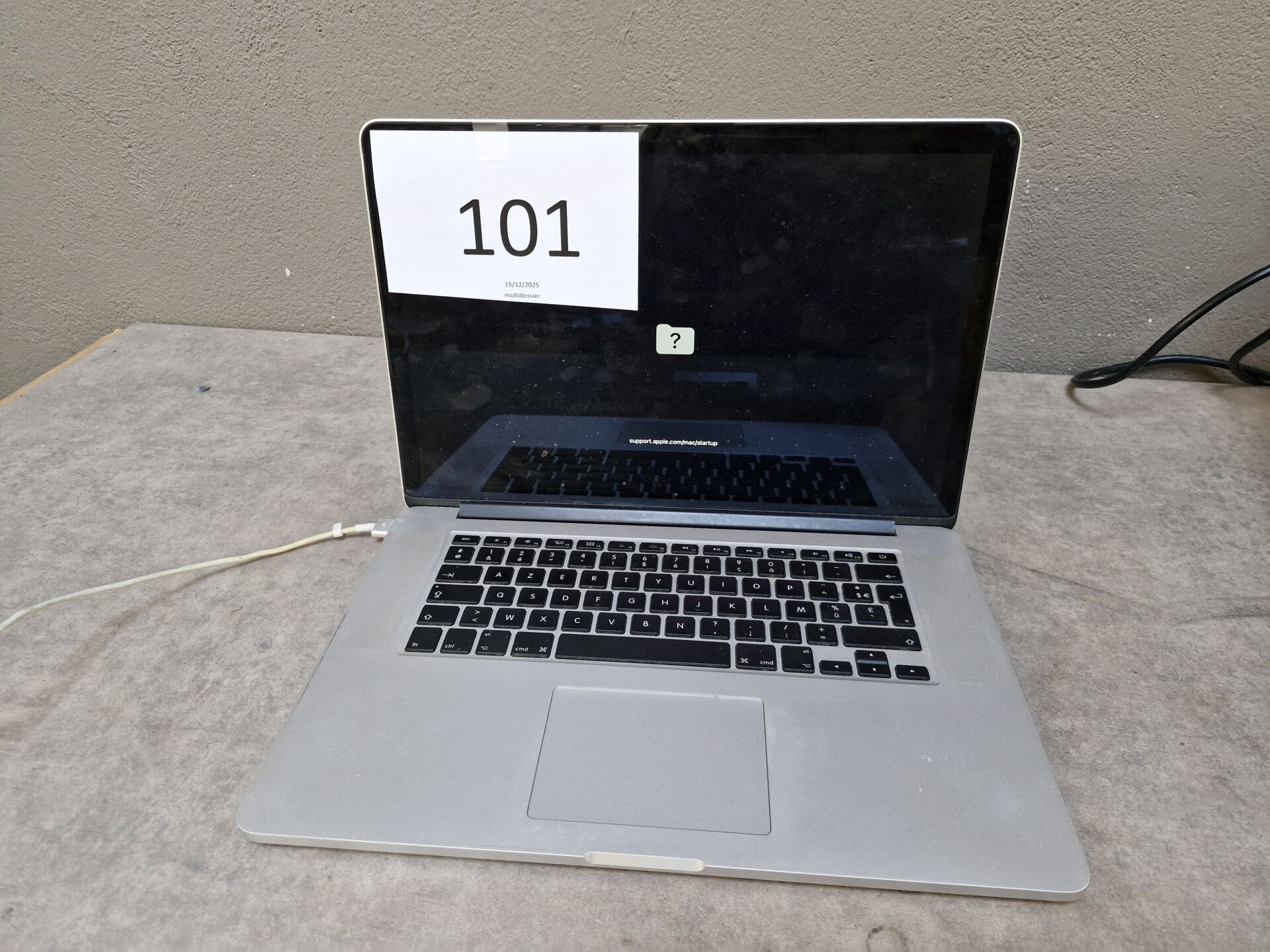 1 ordinateur portable APPLE MACKBOOK PRO modèle A1398, ré-initialisé, système à ré-installer, NS C02RN1DAG8WP 16 Go Intelcore i7 quatre coeur, mi-2015, mdp,inconnu, avec chargeur + 1 chargeur supplémentaire Expédition possible en France Métropolitaine pour 26.87 €