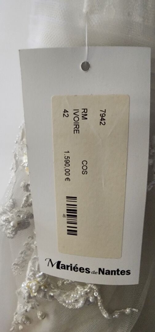 1 robe de mariée os MARIEES DE NANTES 7942 ivoire taille 42 ( prix neuf: 1590€)