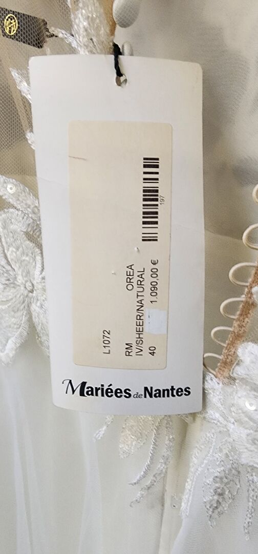 1 robe de mariée Orea MARIEES DE NANTES L1072 ivoire/sheer/natural taille 40 ( prix neuf: 1090€)