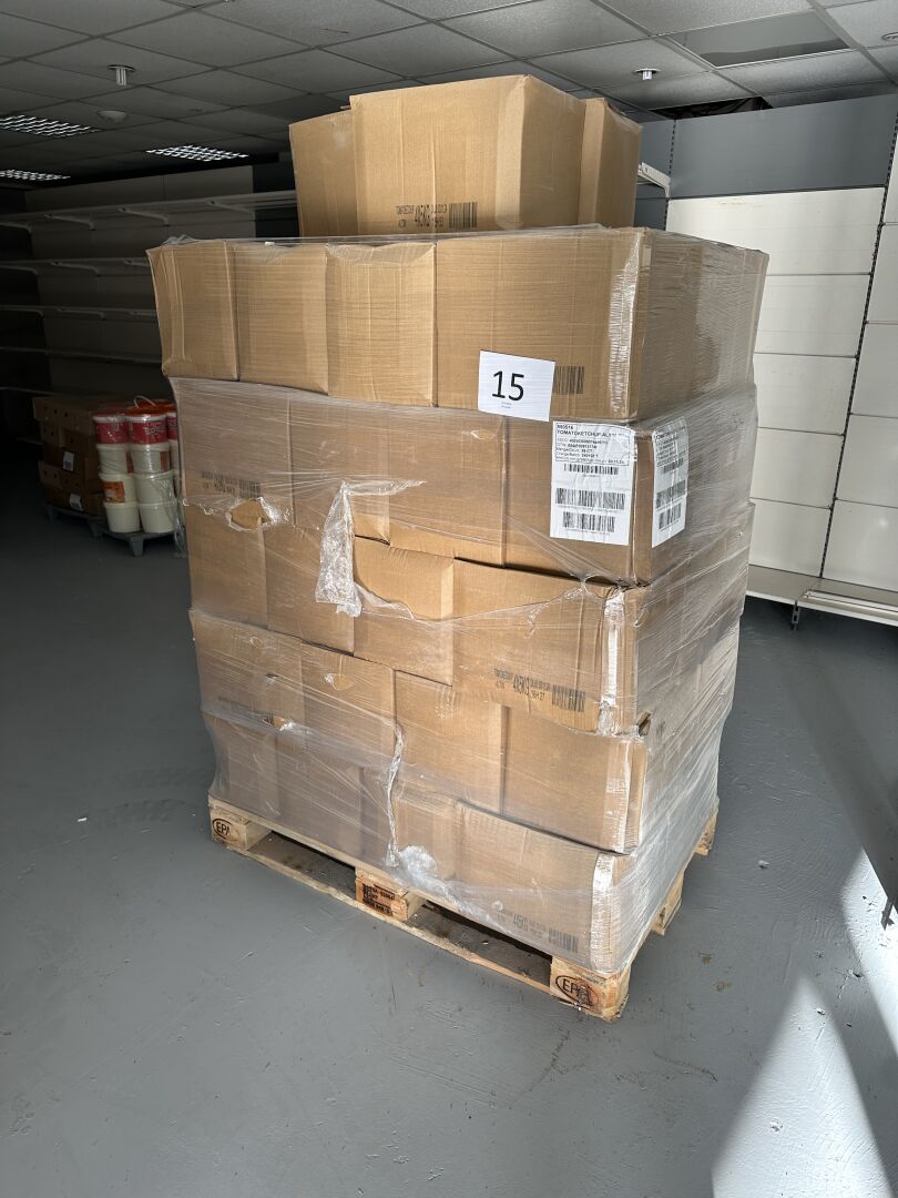 Vendu sur désignation le 15 12 2025 à 15h30 24 rue du marché commun 44300 Nantes, visible le 15 12 2025 sur RDV à 12h à NANTES (Nant'est Entreprise) , enlèvement le 22 12 2025 de 9h à 17h , frais de mise à disposition 10 € TTC par lot Stock de produits alimentaires, environ : - 188 boites de 5KG de sauce Ketchup, - 6 pots de 4,7KG de sauces Samouraï, - 15 cartons de 6 sachets de 18 galettes, - 27 pots de 5KG de sauce Andalouse, - 30 colis de 12 boites de sauce Harissa; - 26 boites de 10 litres d'huile Tournesol, En partie périmé, L'acheteur fera son affaire personnelle des denrées dont la DLUO serait dépassée, recommercialisation interdite Stock de, environ : - 61 cartons de 250 sacs Kraft (280 x 170 x 290), - 45 cartons de 500 sacs Kraft (250 x 140 x 450); - 15 cartons de 250 sacs (23 x 16 x 35) - 32 cartons de 8 rouleaux de sacs poubelles 130L, - 80 cartons de 200 box sandwich en carton, - 24 cartons de 3. 000 gobelets grande taille, - 7 cartons de 1.000 gobelets petite taille, - 7 cartons de 6 rouleaux d'essuie-tout, - 71 cartons de 10KG de papier plateau, - 66 cartons de 4 rouleaux 30M de papier aluminium
