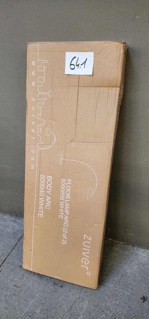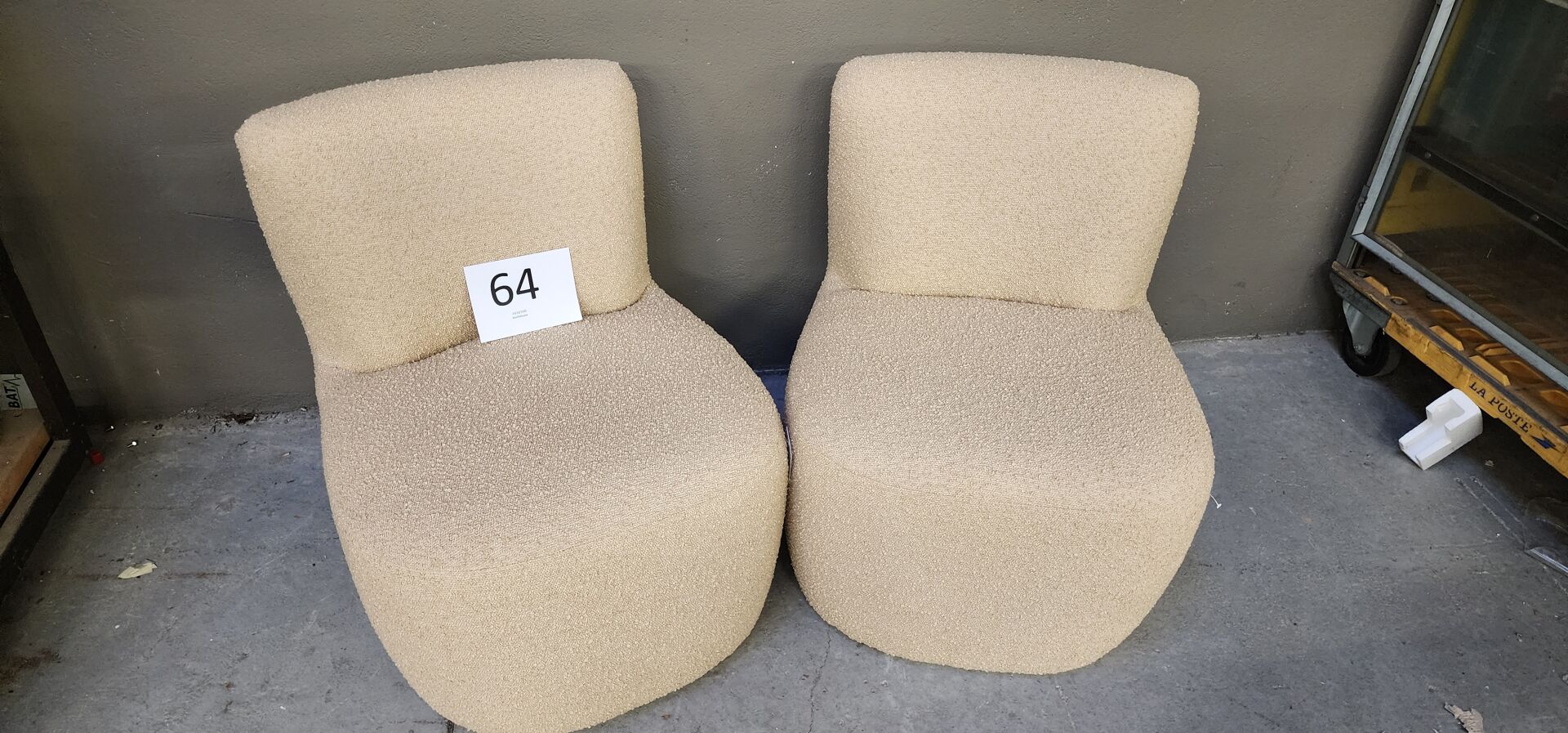2 fauteuils Eve OBJET PARIS en tissu bouclette beige 58x73x71cm en carton 1 lampe à pied ZUIVER arc floor métal blanc le tout en cartonD:DB36B:C