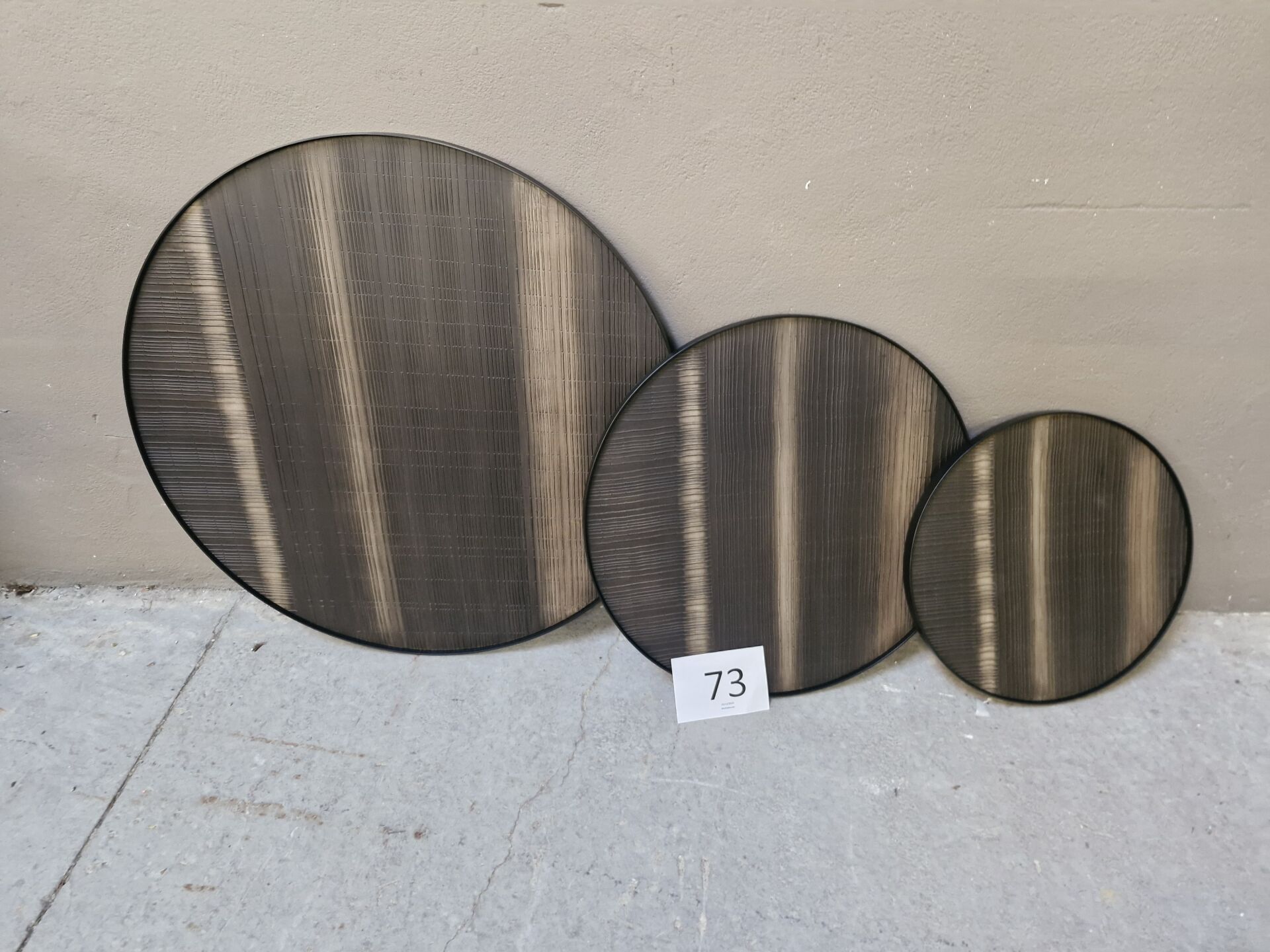 Décoration murale comprenant 3 tableaux ronds en argile statifiée avec cadre en métal noir ETHNICRAFT diam.84, 61 et 46 cm