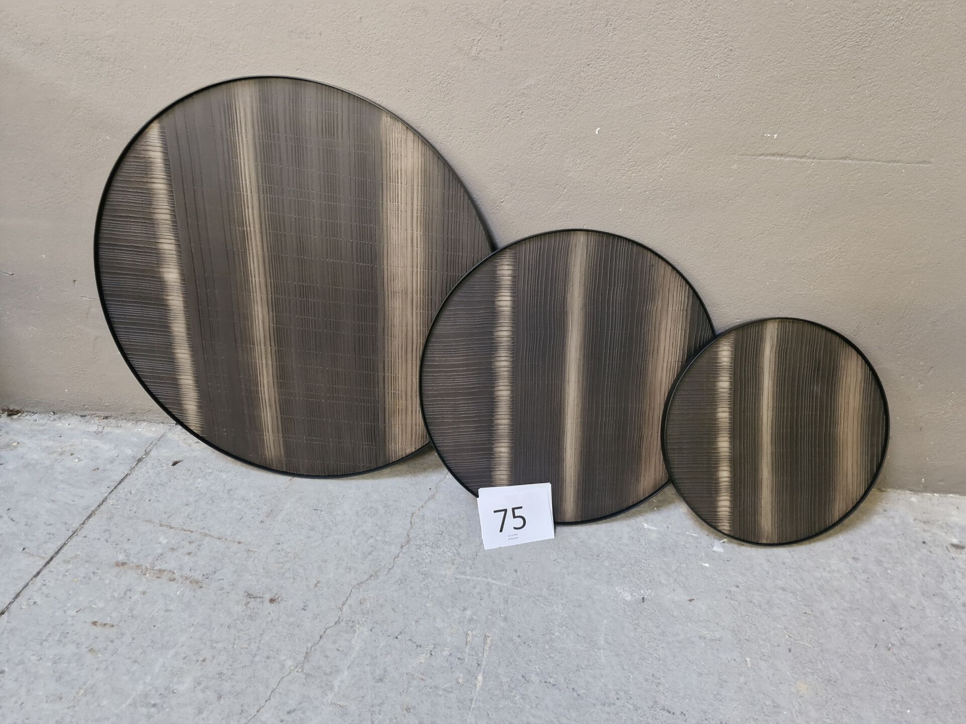 Décoration murale comprenant 3 tableaux ronds en argile statifiée avec cadre en métal noir ETHNICRAFT diam.84, 61 et 46 cm