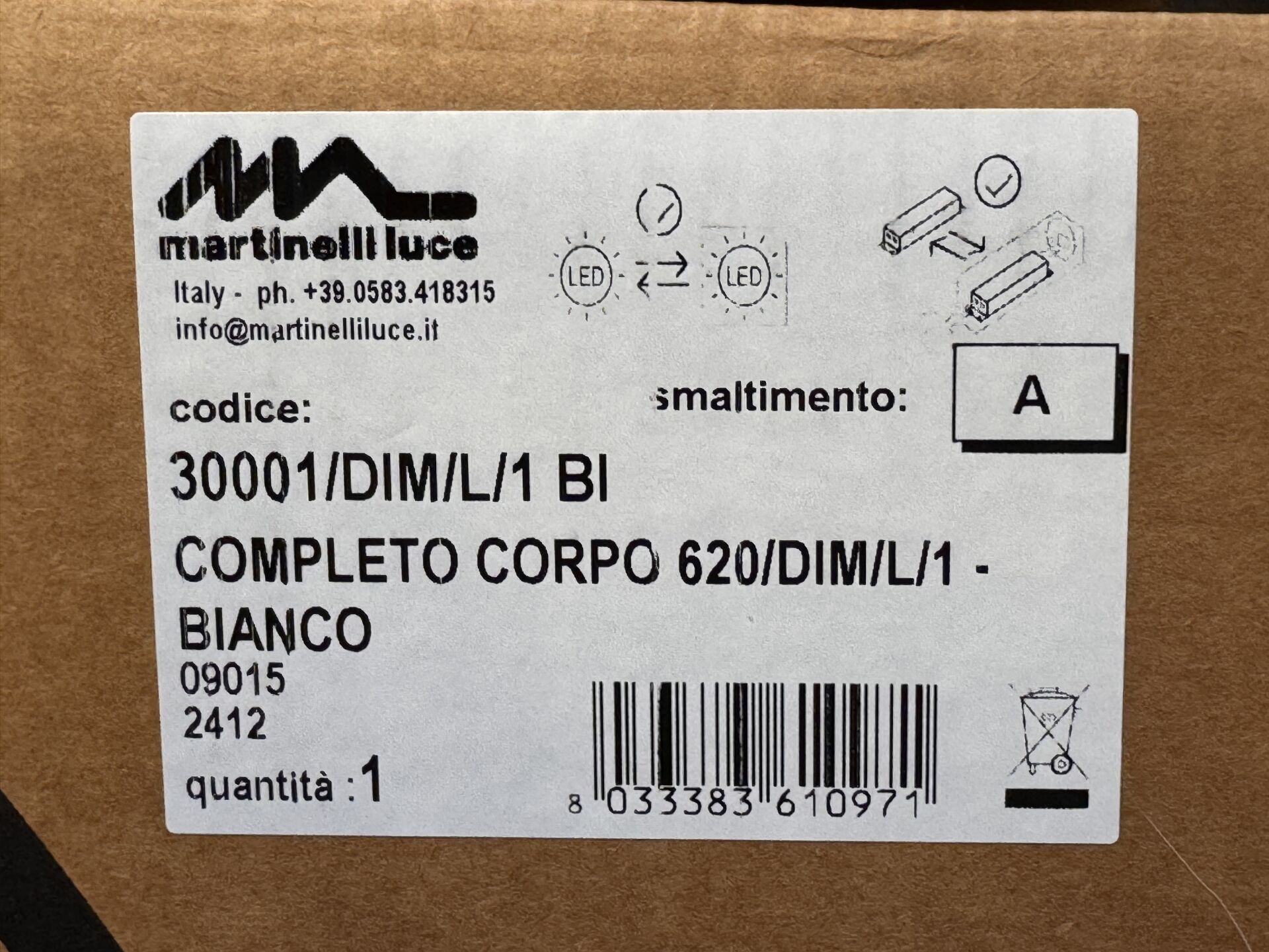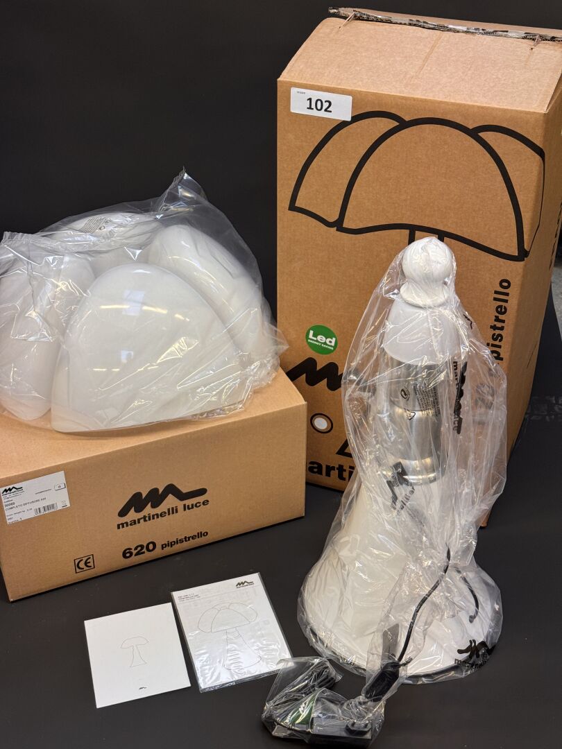 LAMPE MARTINELLI LUCE MODELE PIPISTRELLO PAR GAE AULENTI BLANCHE 620 GRAND MODELE / LED DIMMABLE 14W 2700K / ETAT MAGASIN AVEC EMBALLAGE CONSTRUCTEUR / EXPEDITION POSSIBLE (ce lot chez vous en France métropolitaine pour 49,45€) Lot issu de colis non réclamés : état de fonctionnement non garanti. (la première image est une image d'illustration)