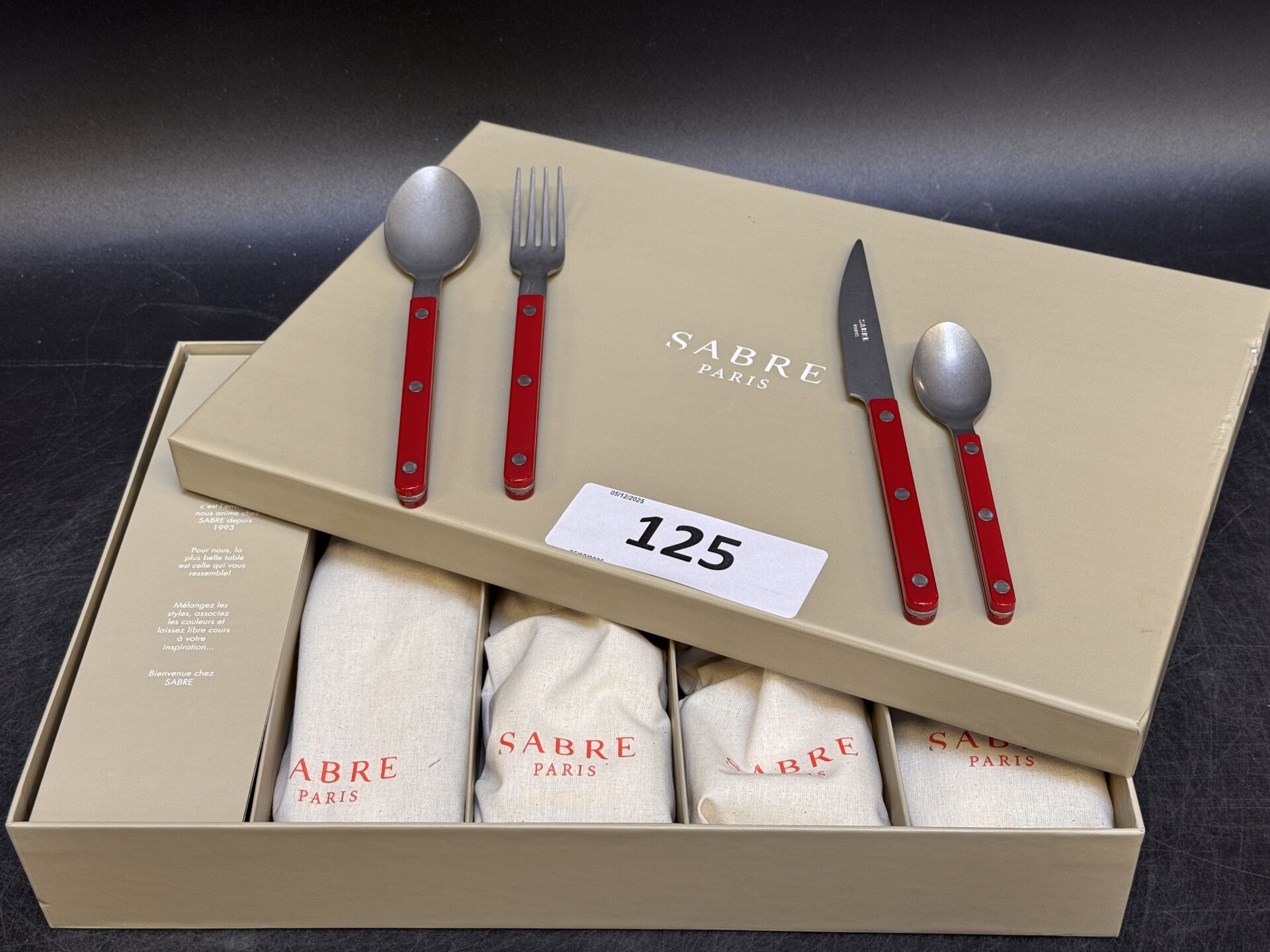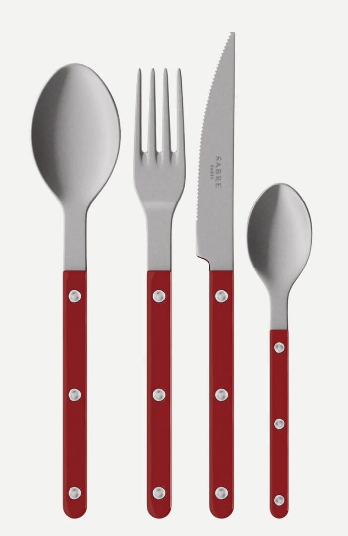 MENAGERE SABRE 24 PIECES BISTROT VINTAGE BORDEAUX EXPEDITION POSSIBLE (ce lot chez vous en France métropolitaine pour 27,45€) Lot issu de colis non réclamés : état de fonctionnement non garanti. (la première image est une image d'illustration)