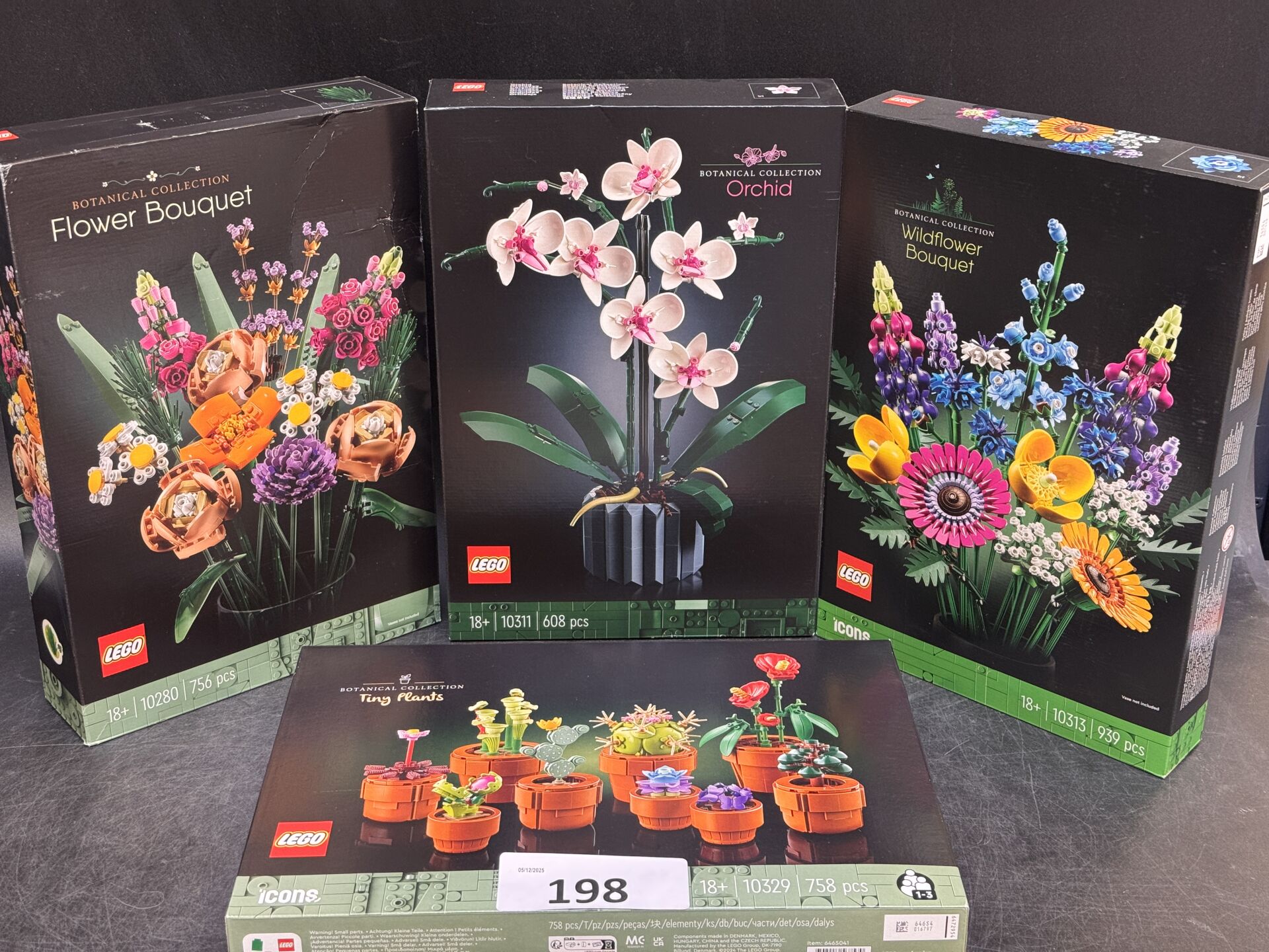 4 LEGO BOTANICAL COLLECTION : ORCHID 10311 / TINY PLANTS 10329 / FLOWER BOUQUET 10280 / WILDFLOWER BOUQUET 10313 EXPEDITION POSSIBLE (ce lot chez vous en France métropolitaine pour 29,15€) Lot issu de colis non réclamés : état de fonctionnement non garanti.
