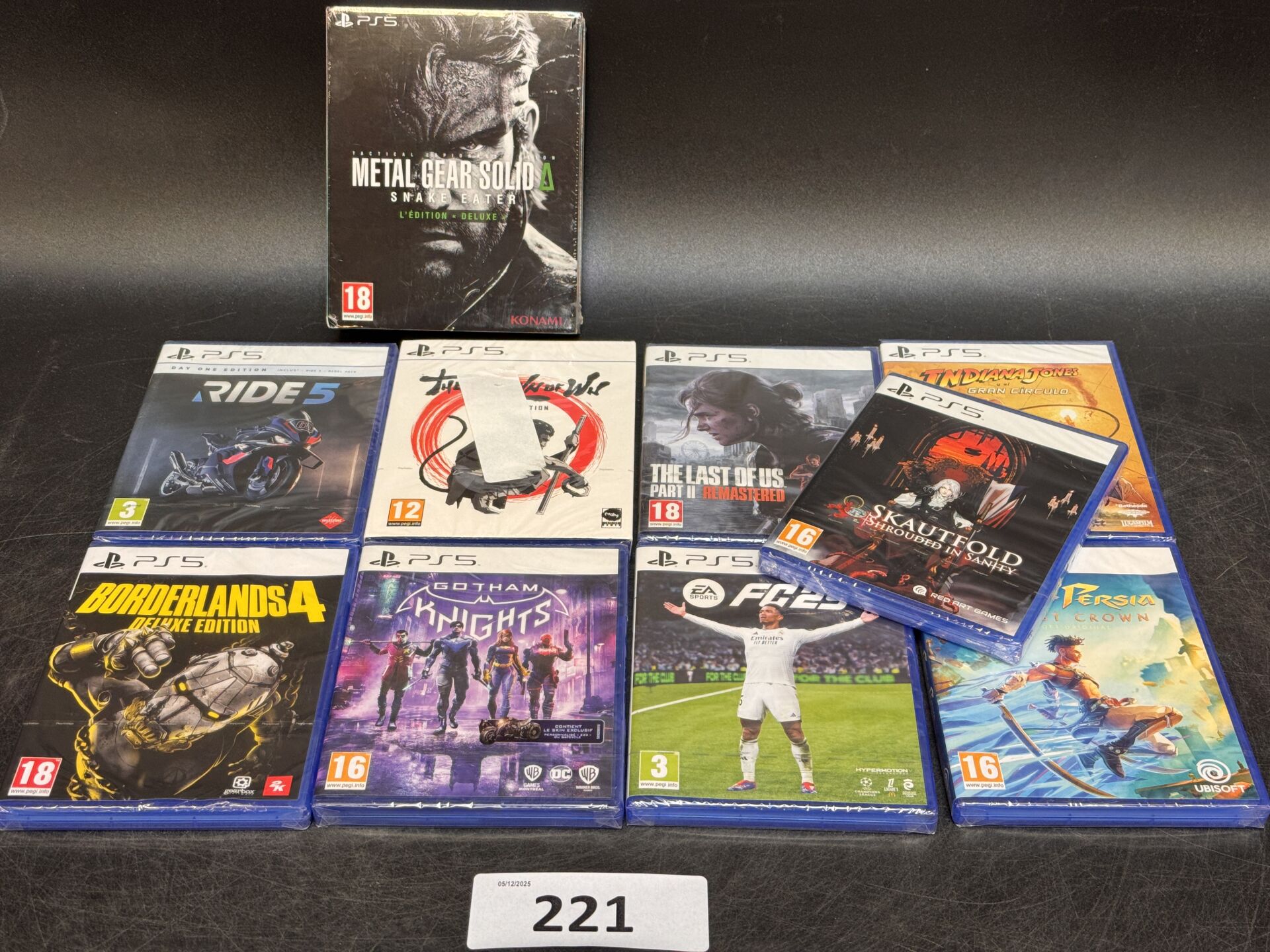 10 JEUX PS5 DONT FC25, THE LAST OF US PART II, METAL GEAR SOLID DELTA SNAKE EATER DELUXE EDITION EXPEDITION POSSIBLE (ce lot chez vous en France métropolitaine pour 27,45€) Lot issu de colis non réclamés : état de fonctionnement non garanti.