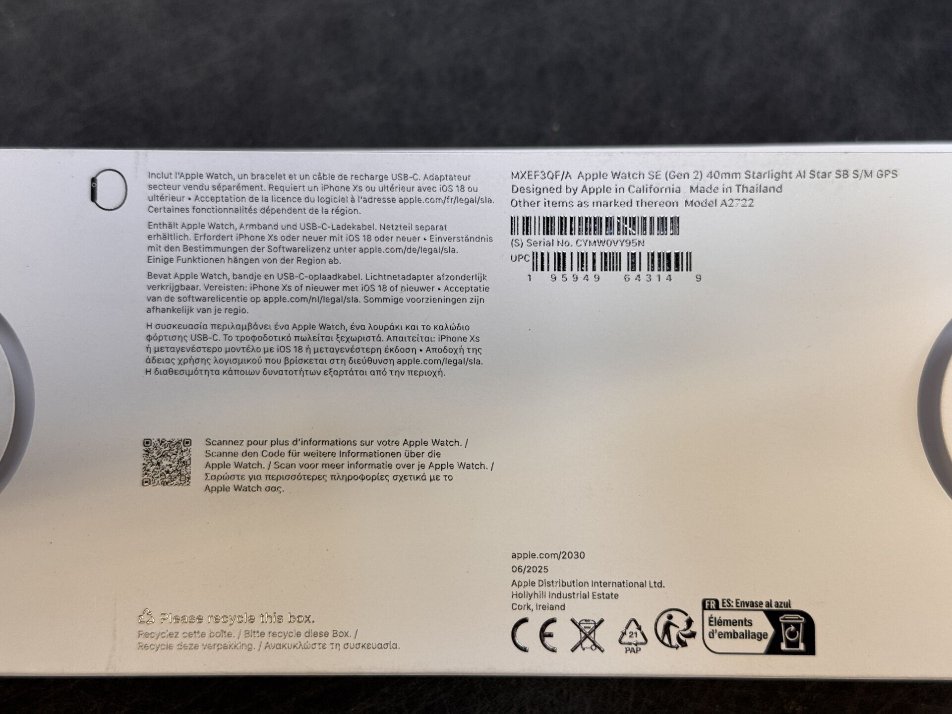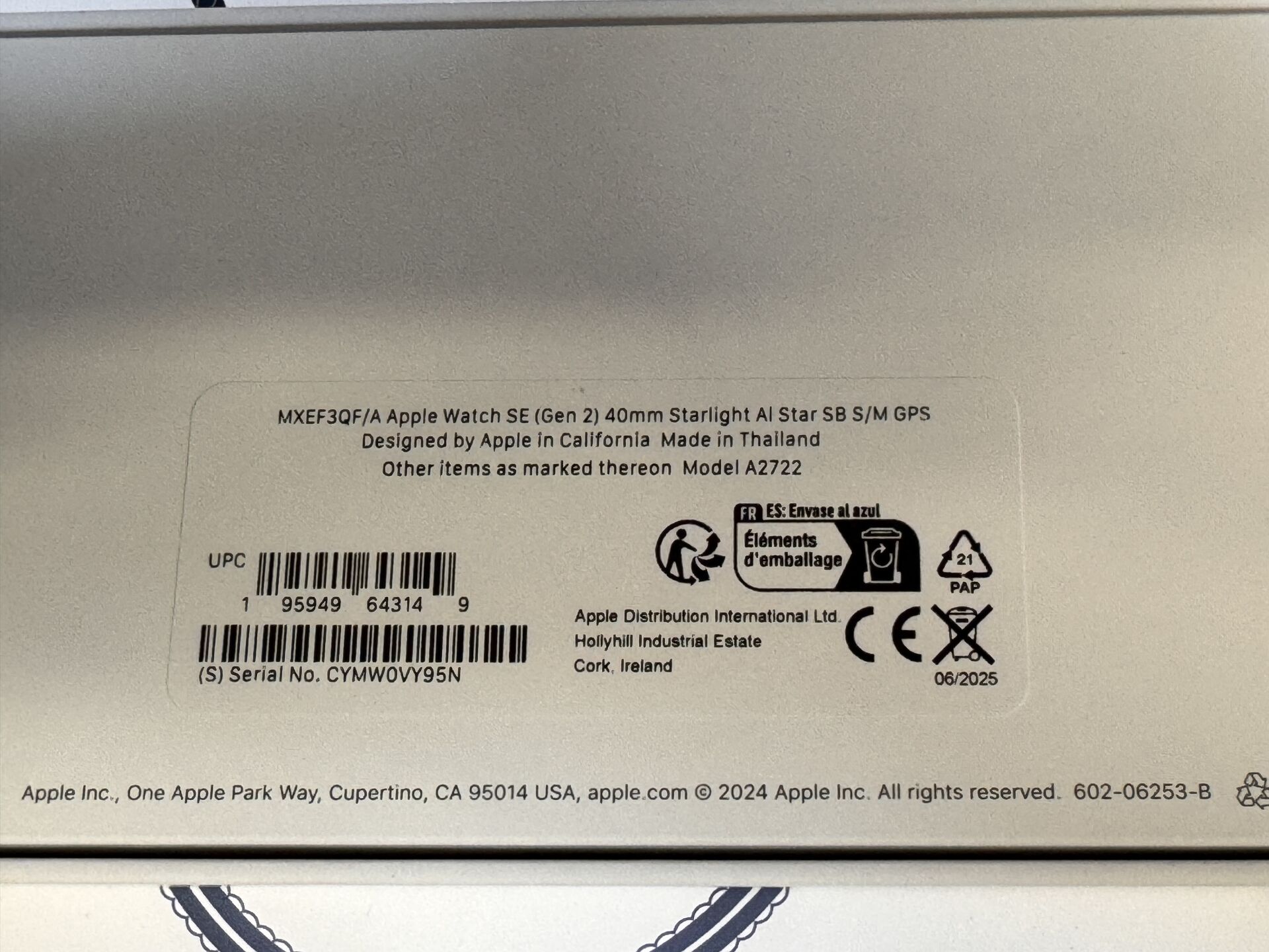 APPLE WATCH SE GEN 2 40MM STARLIGHT A2722 SN CYMW0VY95N 195949643149 (avec scellés) EXPEDITION POSSIBLE (ce lot chez vous en France métropolitaine pour 25,80€) Lot issu de colis non réclamés : état de fonctionnement non garanti.