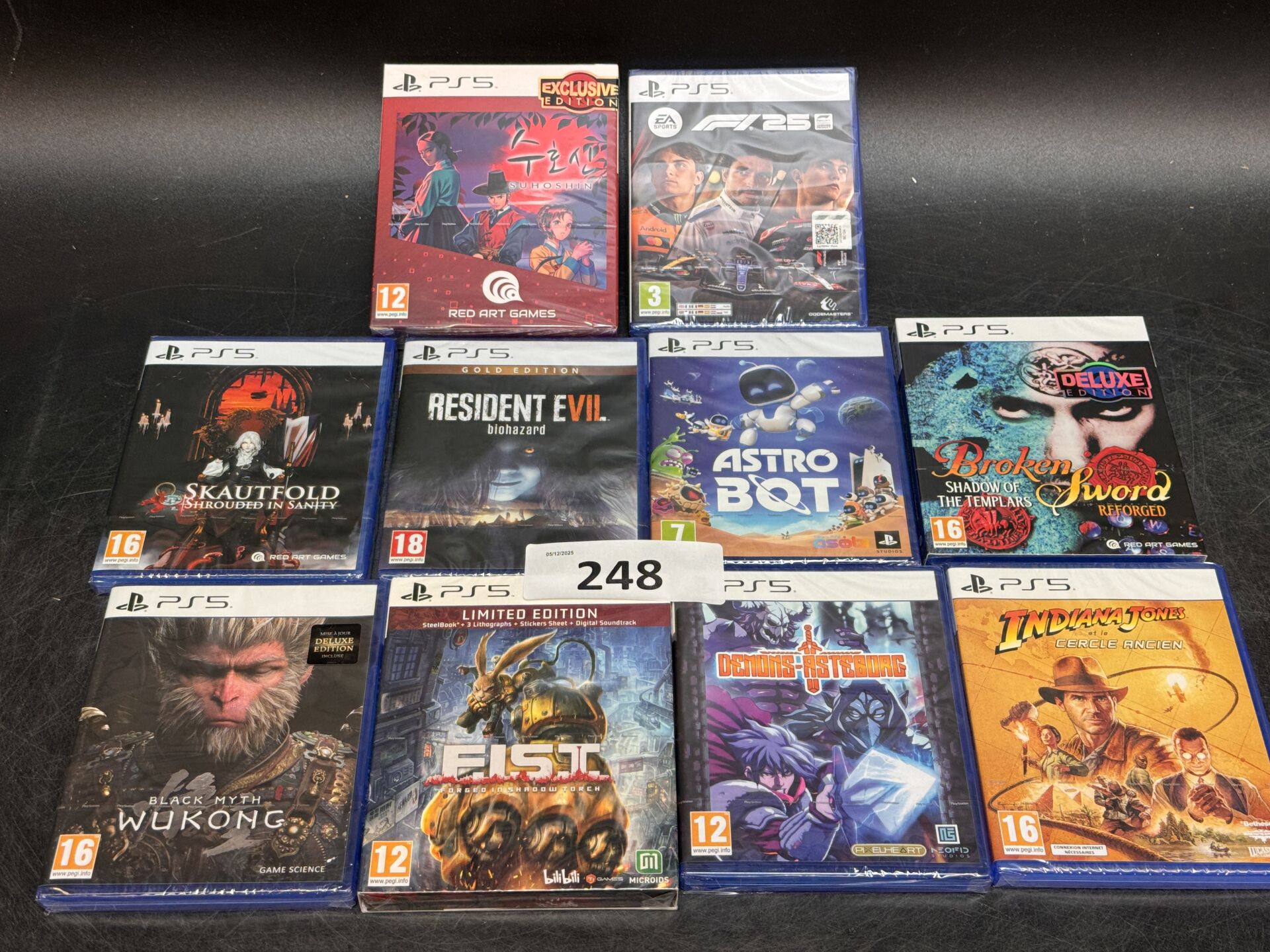 10 JEUX PS5 DONT SUHOSHIN EXCLUSIVE EDITION, F1 25 EXPEDITION POSSIBLE (ce lot chez vous en France métropolitaine pour 27,45€) Lot issu de colis non réclamés : état de fonctionnement non garanti.