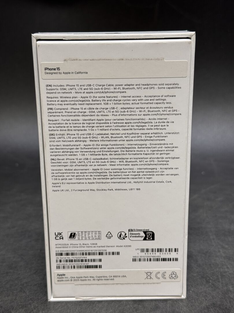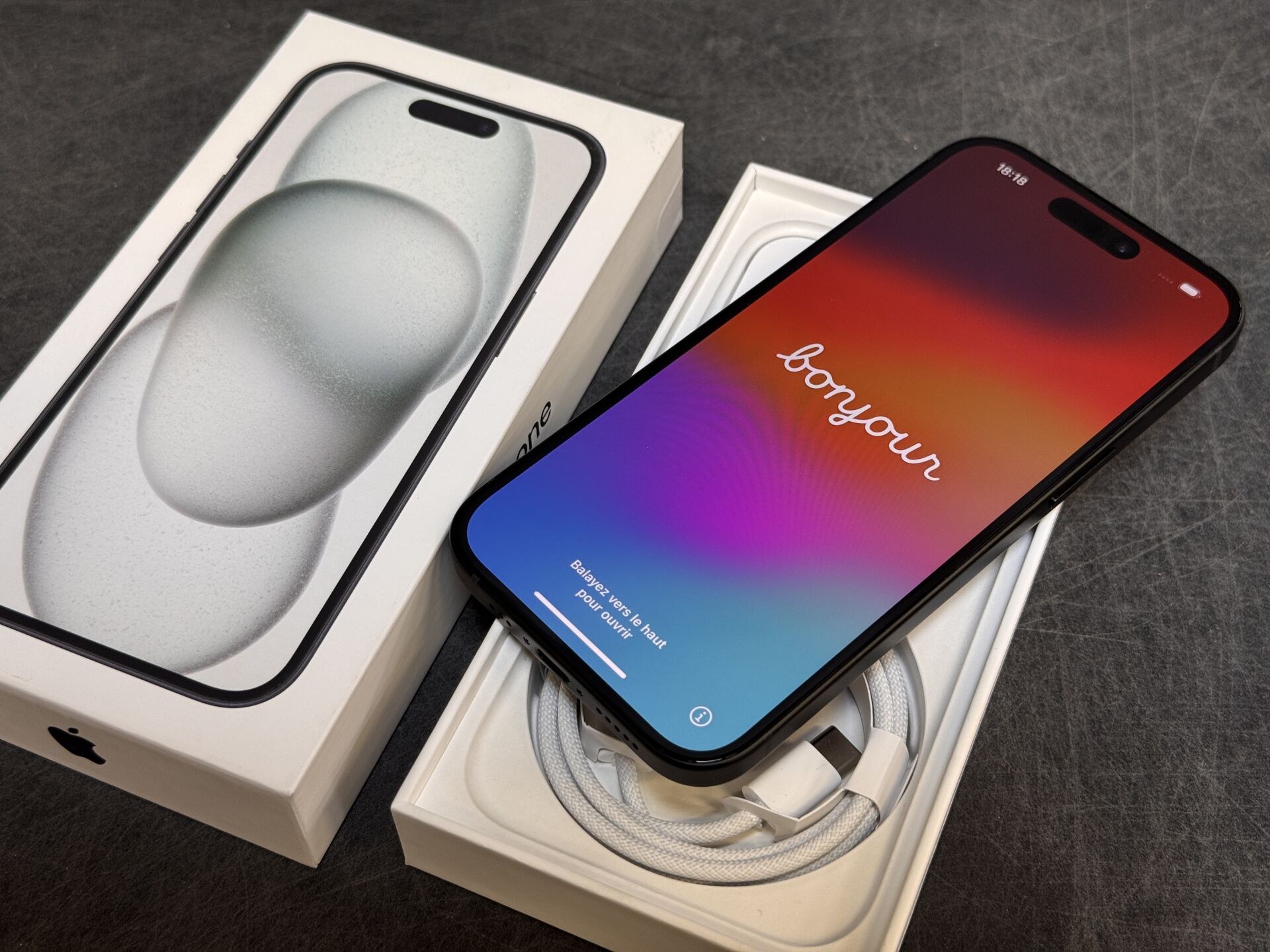APPLE IPHONE 15 128GB BLACK SN F57Q2QTVW4 EXPEDITION POSSIBLE (ce lot chez vous en France métropolitaine pour 25,80€) Lot issu de colis non réclamés : état de fonctionnement non garanti.