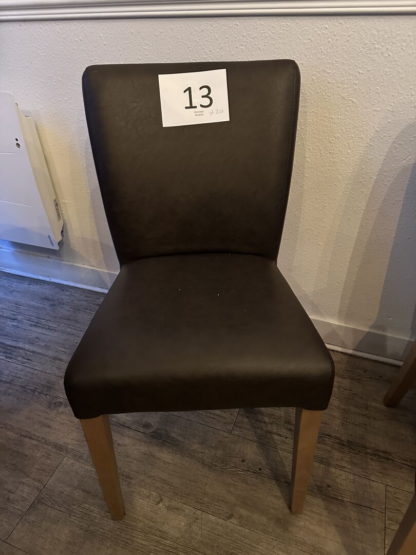20 chaises simili cuir marron piètement bois dont 1 abimée