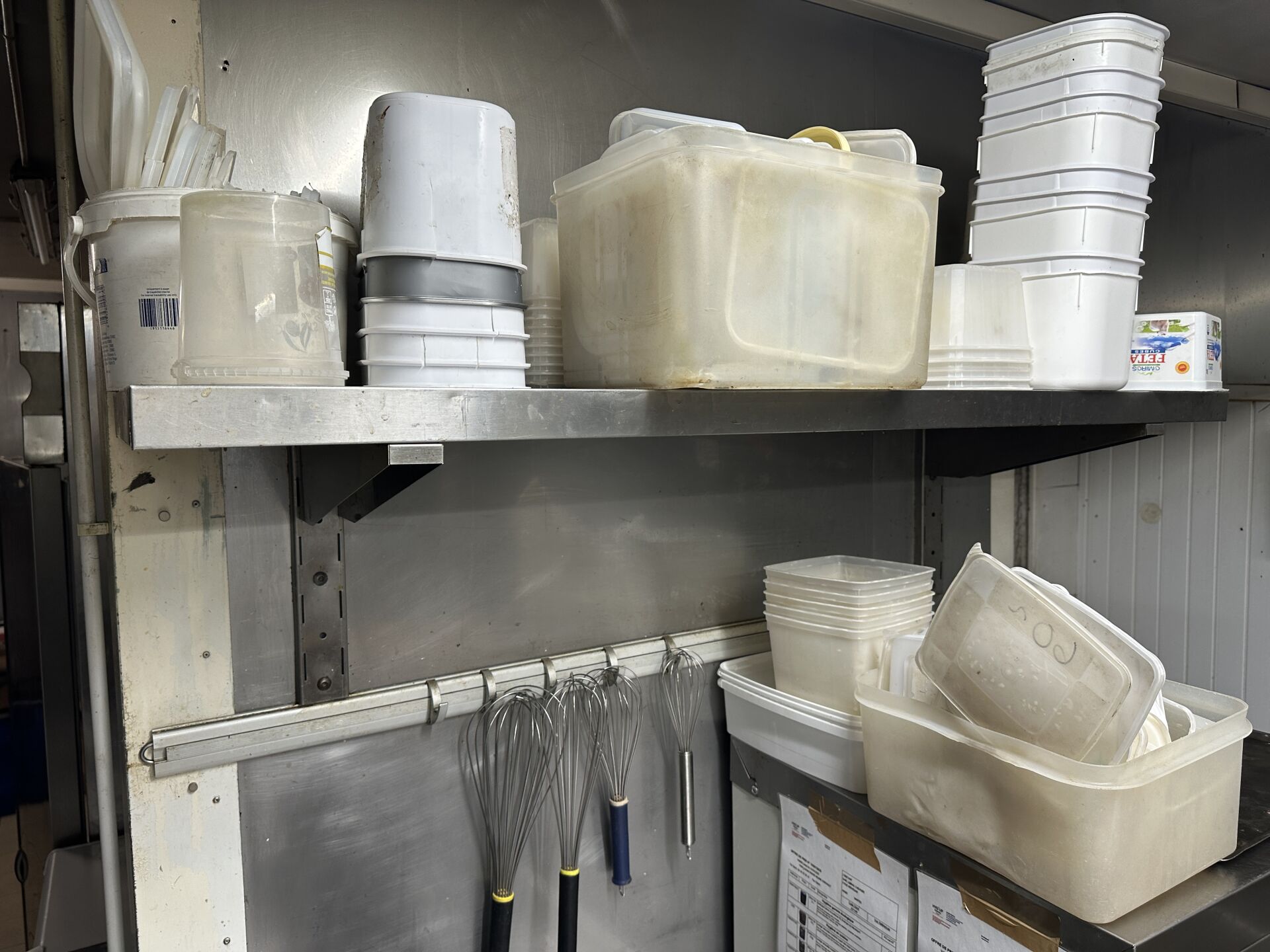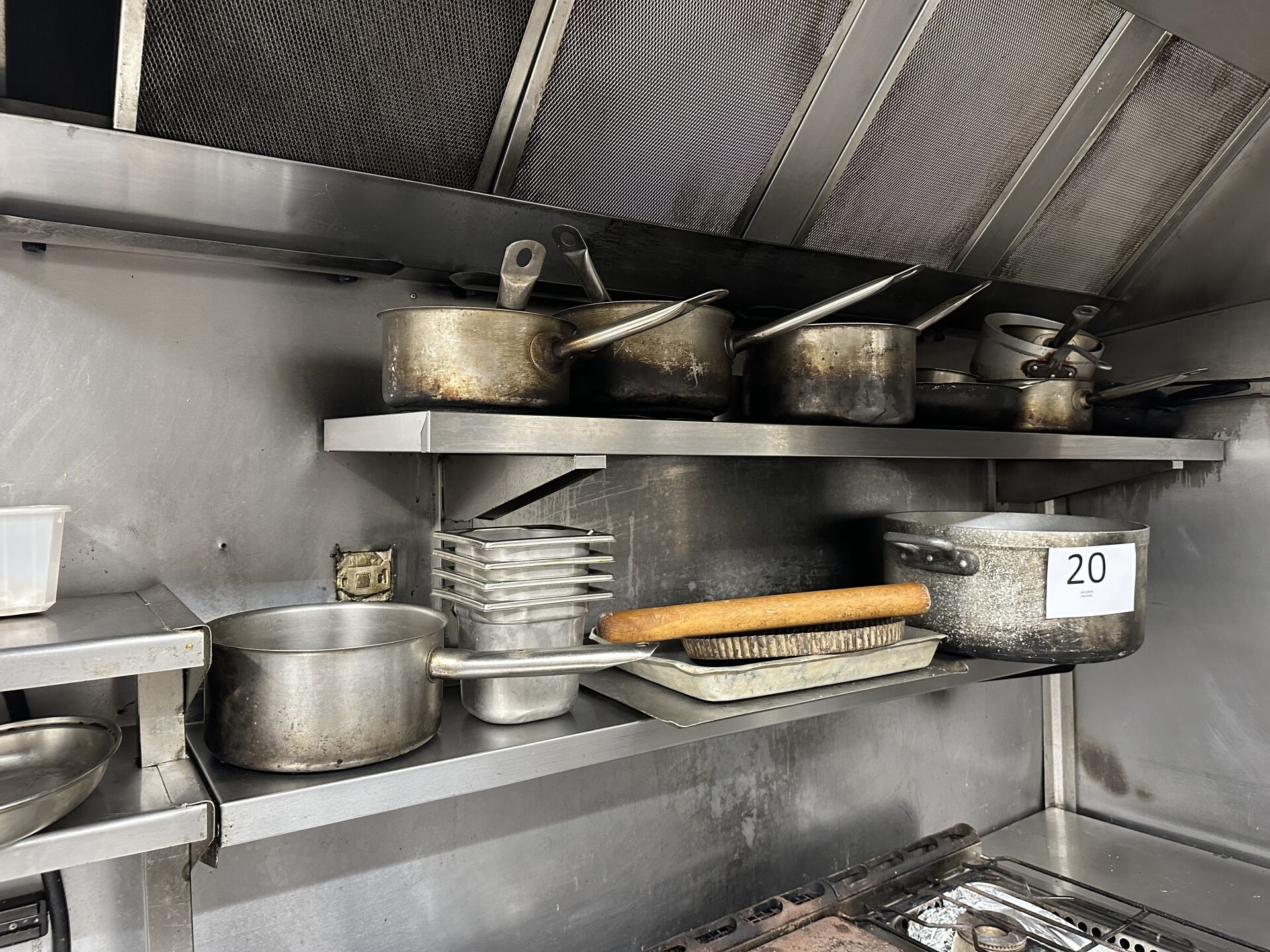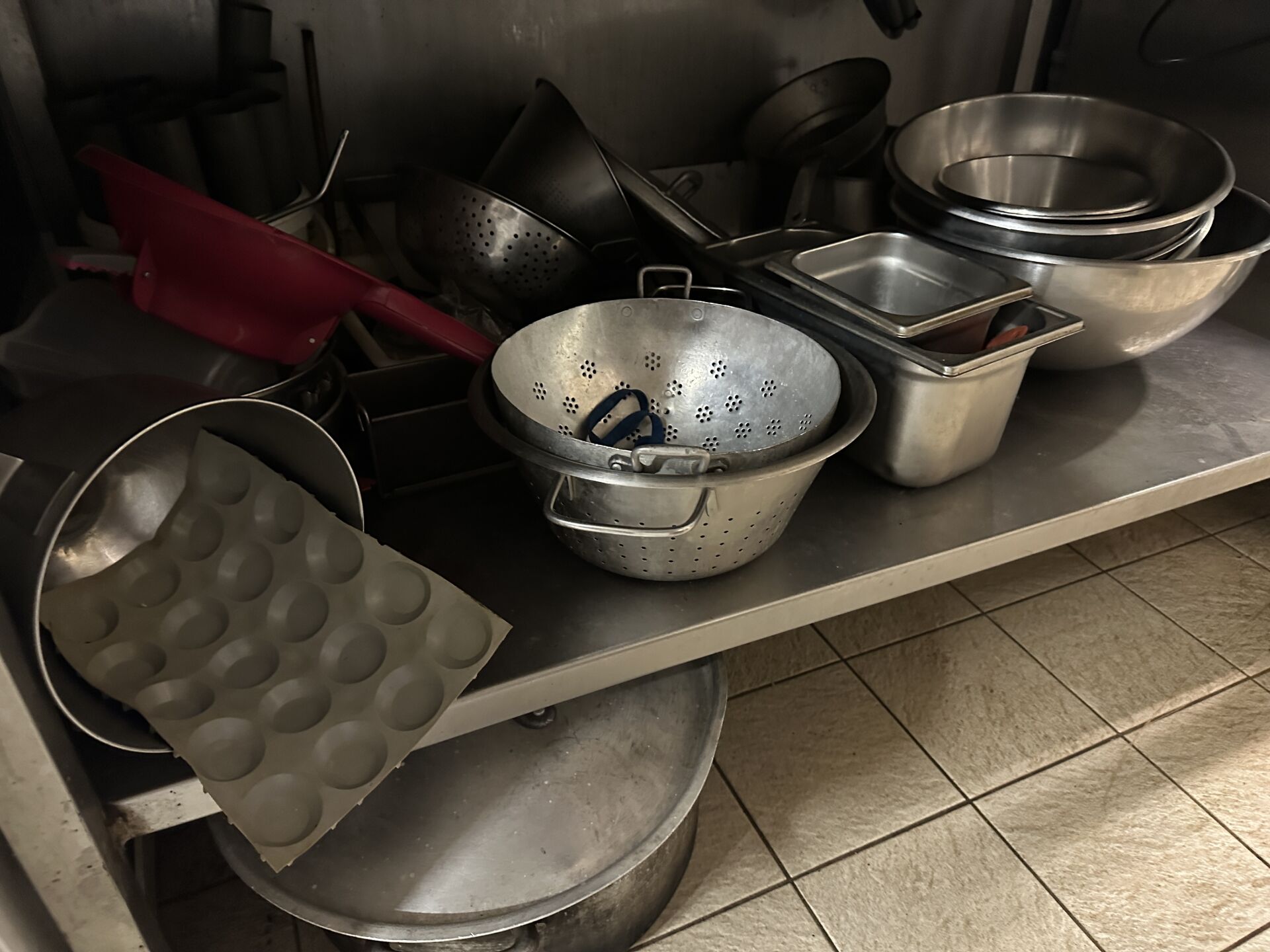 1 lot d'ustensiles de cuisine dont fouet, louche, casserole, faitout, cul de poule, chinois, etc (répartis dans la cuisine)