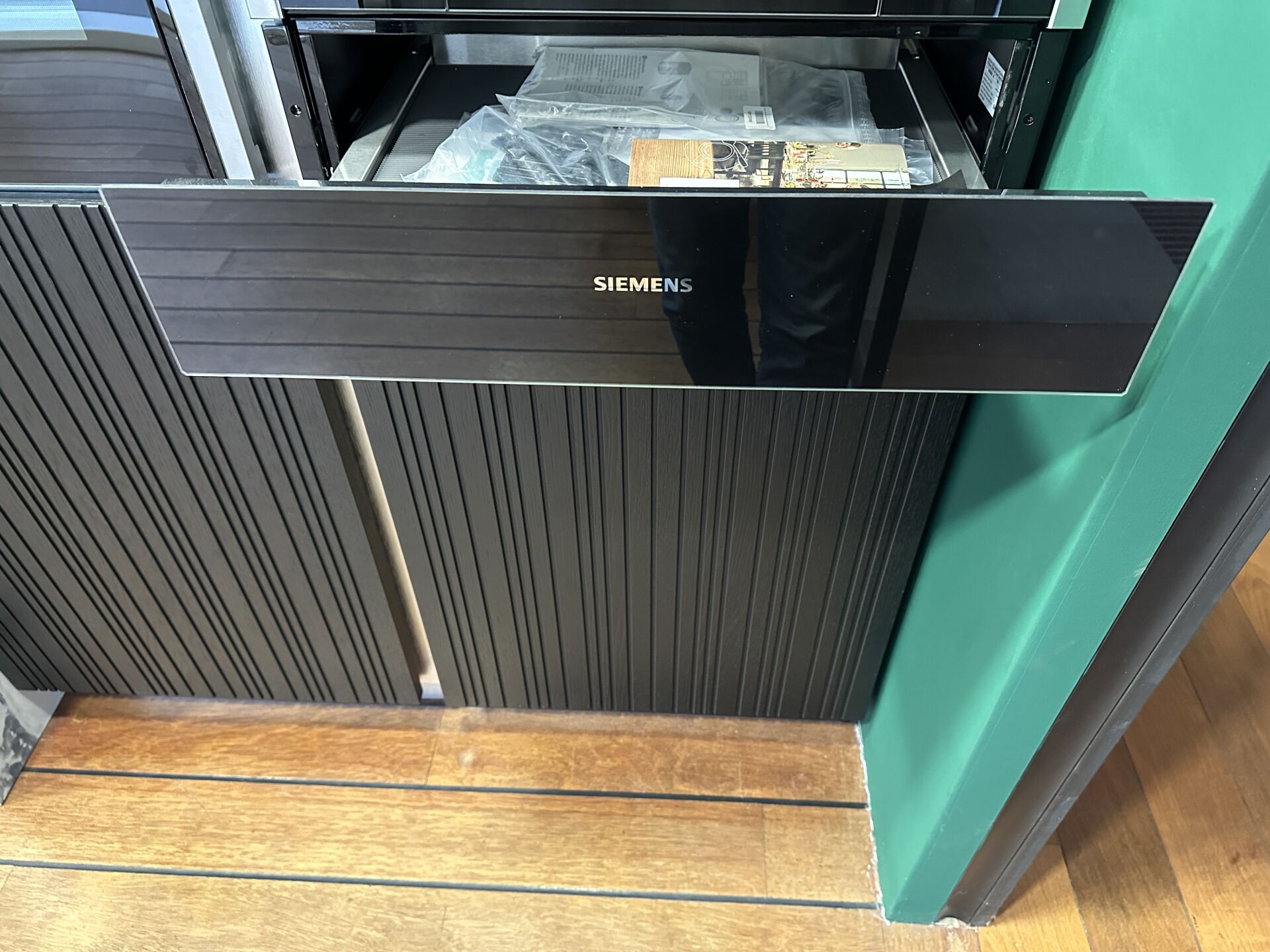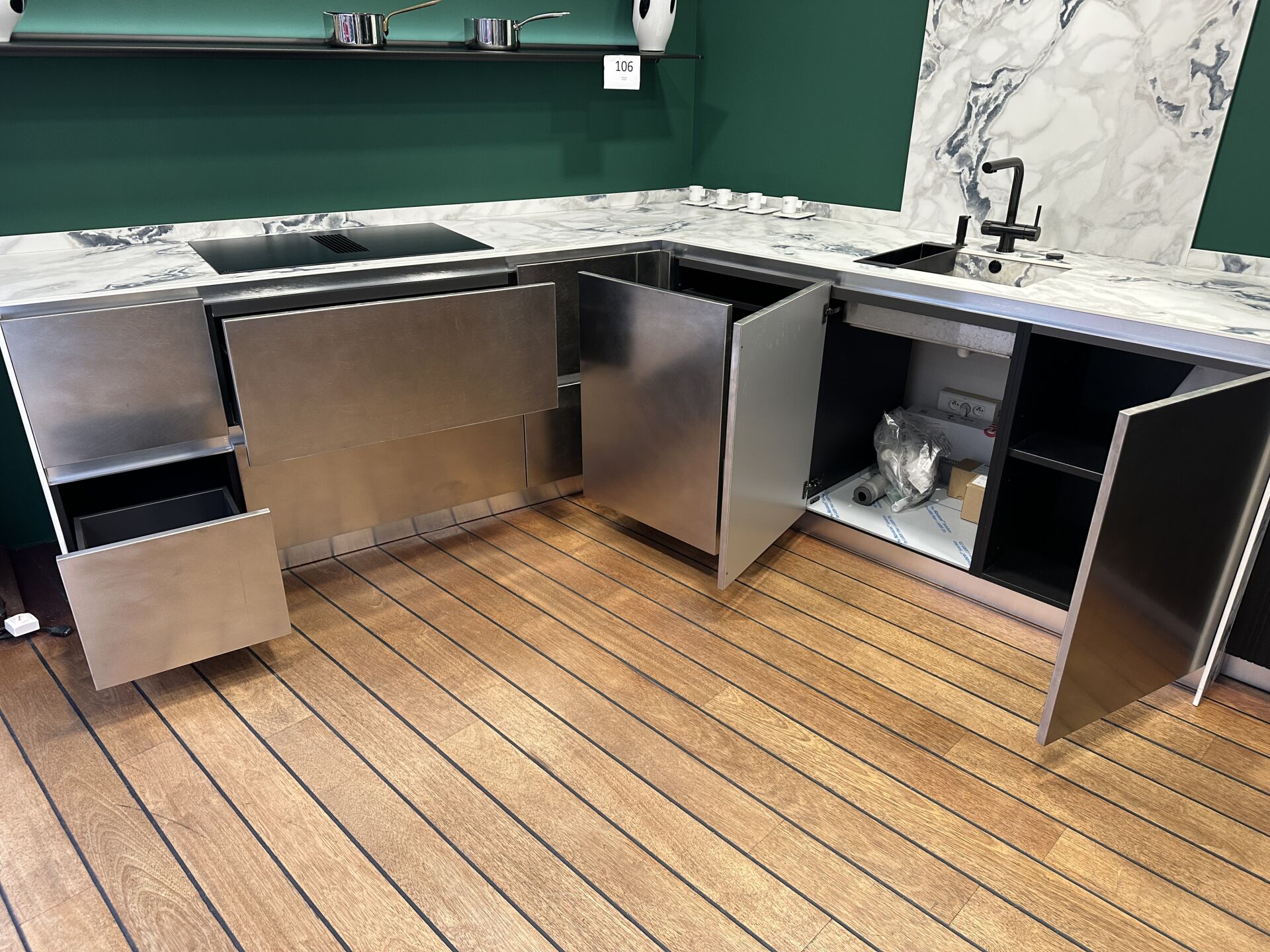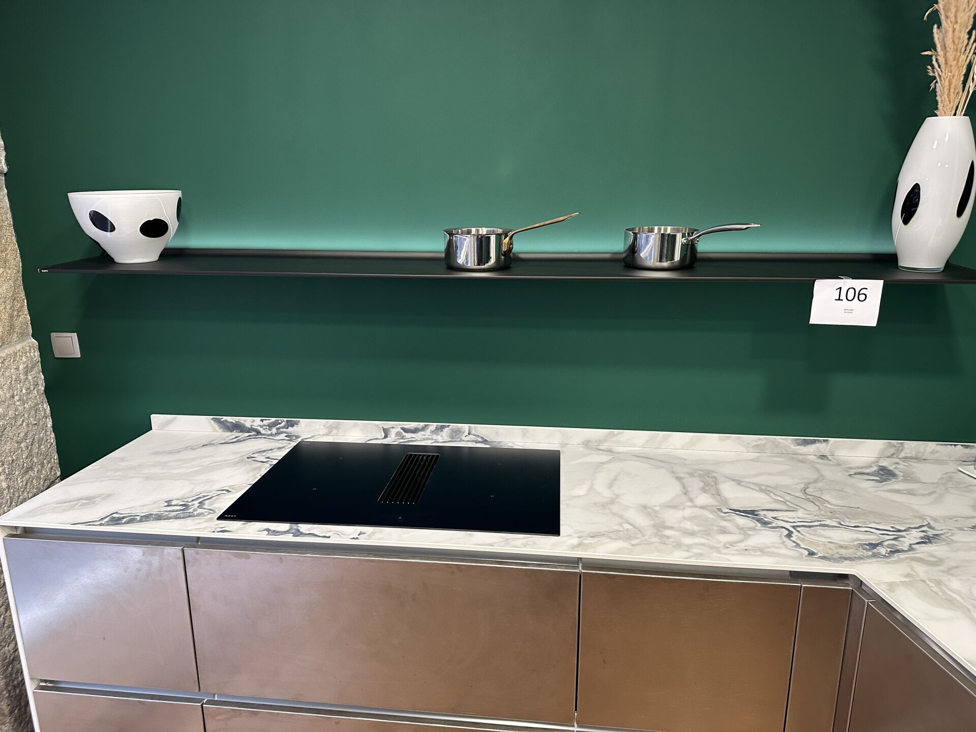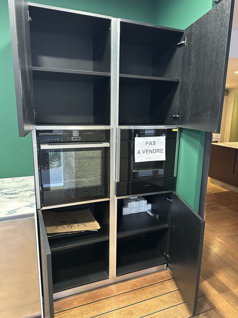 Vendu sur désignation le 09 01 2026 à 14h à ST HERBLAIN 44800 - Visible 09/01/2026 à 8h30 à NANTES (Centre) Enlèvement le 16/01/2026 de 9h à 17h , Frais de mise à disposition 50 € TTC 1 cuisine d'exposition sur mesure en angle, d'environ 5m linéaires 250 x 263 cm, profondeur 73 x 66 cm, avec plan de travail plateau marbre blanc sur meuble mélaminé habillage inox 3 portes et 6 tiroirs, avec bac et mitigeur + distributeur de savon BRADANO , plaque de cuisson induction 4 feux avec hotte intégrée NOVY (80 x 52 cm) avec meuble mélaminé noir rainuré 4 portes 123 x60 x 226 cm avec four NEFF CircoTherm et 1 tiroir chauffant SIEMENS intégrés + 1 étagère murale éclairée NOVY 237 x 33 cm + décoration NOTE : LA MACHINE A CAFE N'EST PAS A VENDRE A DEMONTER PROPREMENT SANS DOMMAGE A L'IMMEUBLE