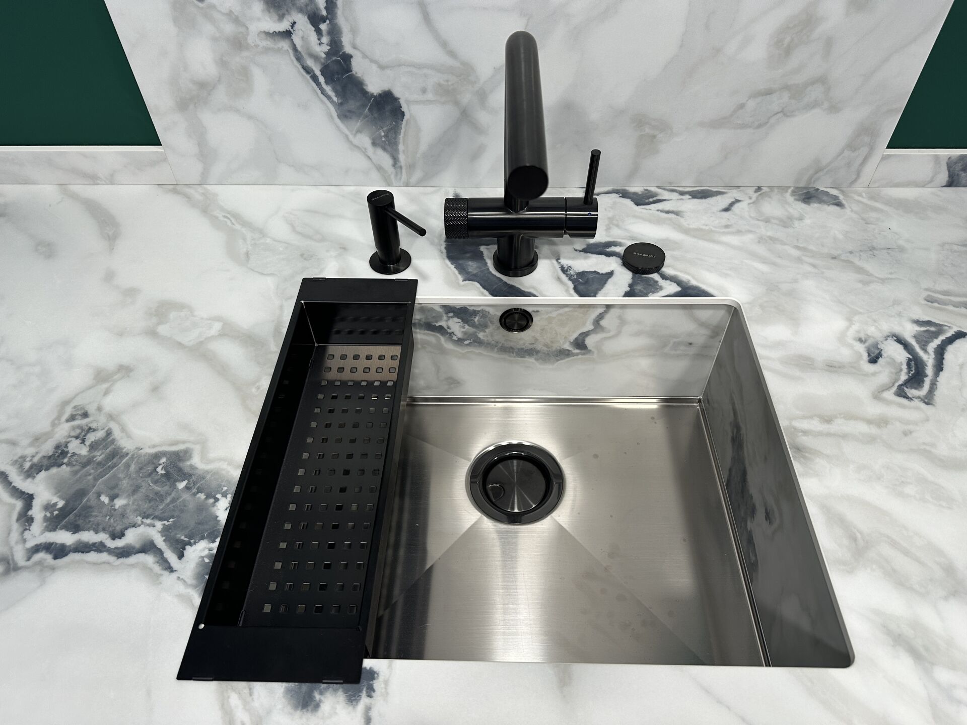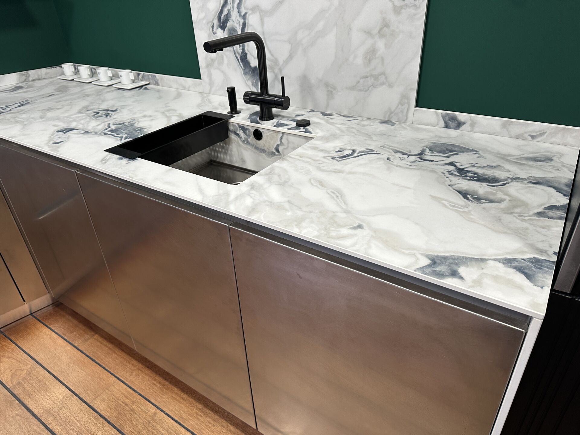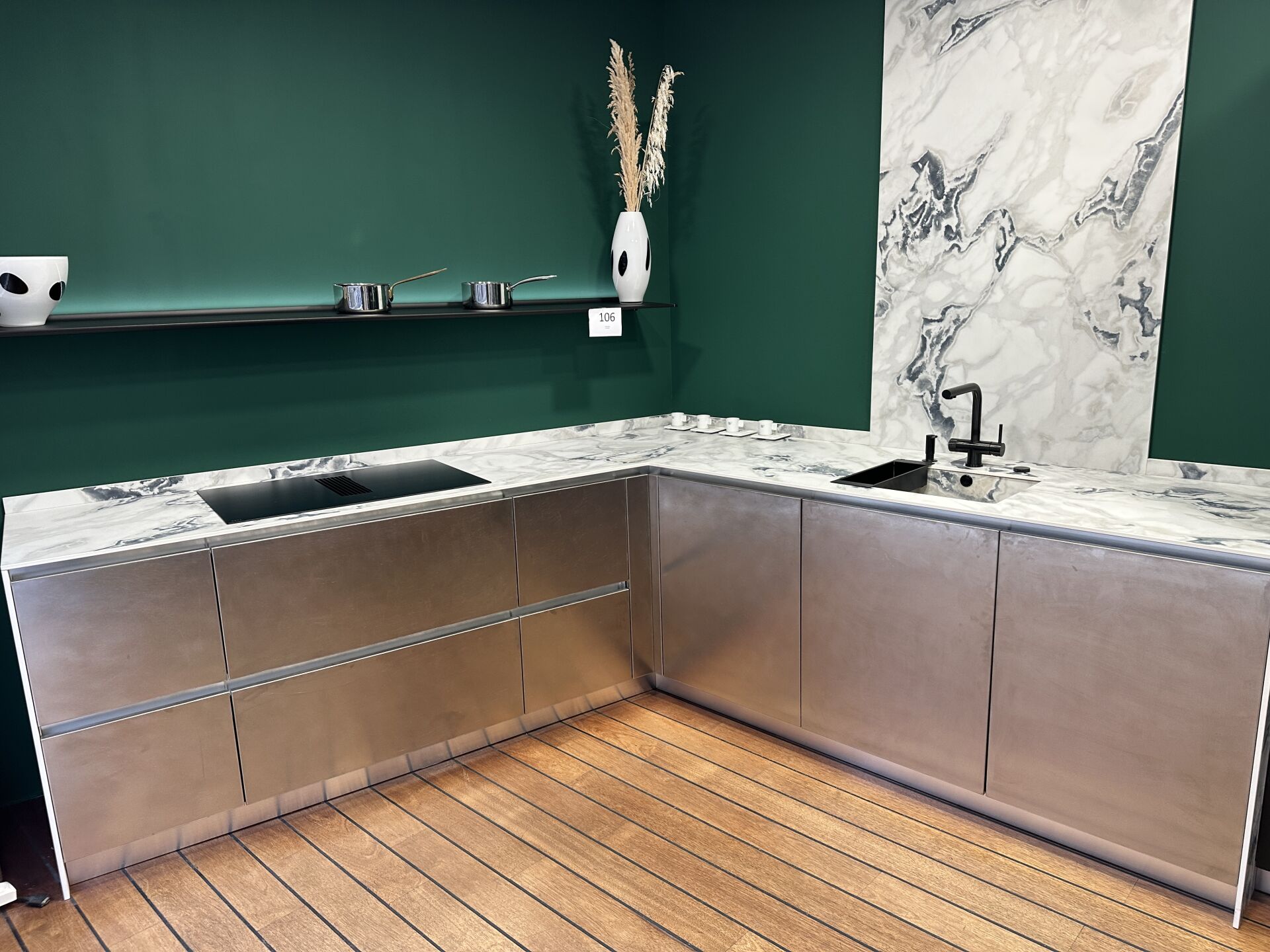 Vendu sur désignation le 09 01 2026 à 14h à ST HERBLAIN 44800 - Visible 09/01/2026 à 8h30 à NANTES (Centre) Enlèvement le 16/01/2026 de 9h à 17h , Frais de mise à disposition 50 € TTC 1 cuisine d'exposition sur mesure en angle, d'environ 5m linéaires 250 x 263 cm, profondeur 73 x 66 cm, avec plan de travail plateau marbre blanc sur meuble mélaminé habillage inox 3 portes et 6 tiroirs, avec bac et mitigeur + distributeur de savon BRADANO , plaque de cuisson induction 4 feux avec hotte intégrée NOVY (80 x 52 cm) avec meuble mélaminé noir rainuré 4 portes 123 x60 x 226 cm avec four NEFF CircoTherm et 1 tiroir chauffant SIEMENS intégrés + 1 étagère murale éclairée NOVY 237 x 33 cm + décoration NOTE : LA MACHINE A CAFE N'EST PAS A VENDRE A DEMONTER PROPREMENT SANS DOMMAGE A L'IMMEUBLE