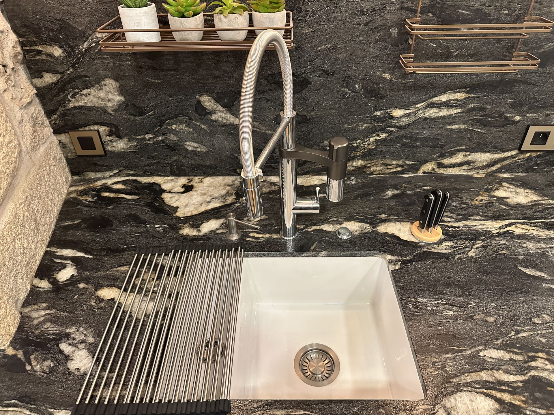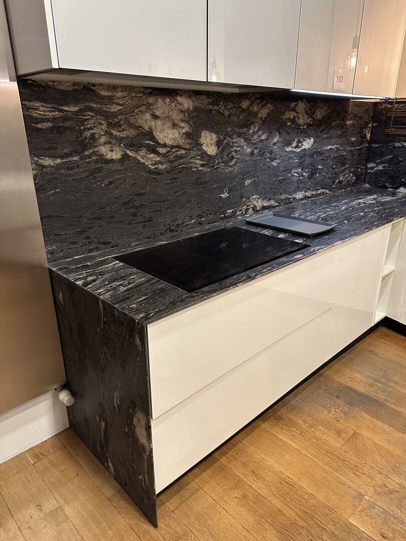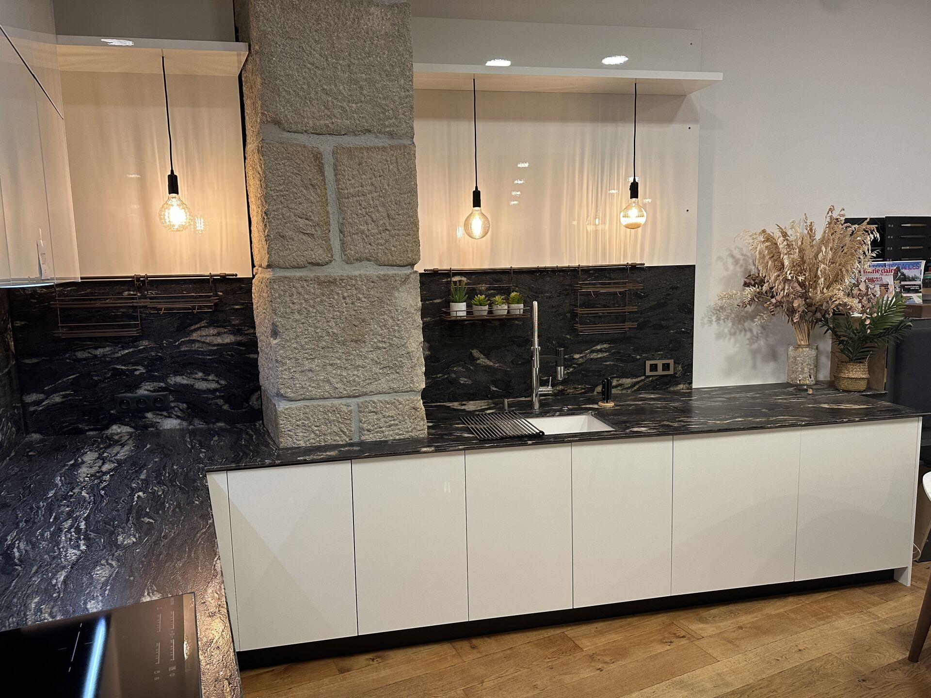 Vendu sur désignation le 09 01 2026 à 14h à ST HERBLAIN 44800 - Visible 09/01/2026 à 8h30 à NANTES (Centre) Enlèvement le 16/01/2026 de 9h à 17h , Frais de mise à disposition 50 € TTC 1 cuisine d'exposition sur mesure en angle, d'environ 5m linéaires 400 x 287 cm, profondeur de 70 à 83 cm, et de 70 x 68 cm, avec plan de travail et crédence en marbre noir sur meuble mélaminé blanc 6 portes + 4 tiroirs (dont 2 qui ne s'ouvrent plus), 1 bac avec mitigeur FRANKE céramique blanc et douchette, et 1 plaque à induction ELECTROLUX 78 x 52 cm avec meuble mural assorti 8 portes 244 x 34 x 120 cm avec lumière intégrée et hotte NOVY étagères murales avec suspensions 102 x 36 cm et 164 x 33 cm avec décoration A DEMONTER PROPREMENT SANS DOMMAGE A L'IMMEUBLE
