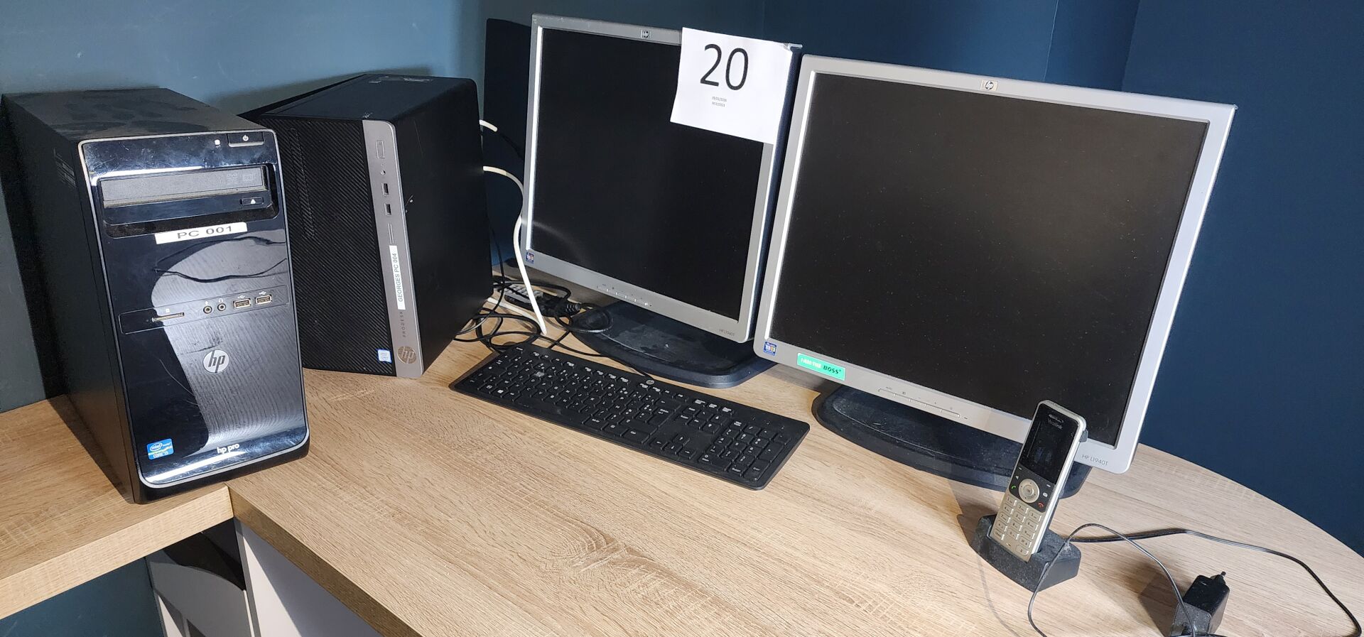 Configuration informatique, comprenant : 1 unité HP PRODESK 400 G5 MT Core i5, + 1 UC H P PRO 3500 Core i 5 1 clavier, 2 écrans HP L1940T 19" + 1 téléphone sans fil Frais de mise à disposition 10 € TTC