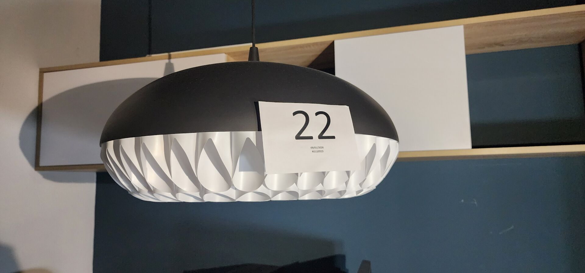1 luminaire en suspension métal noir et PVC blanc alvéolé diam 60 cm A démonter proprement , prévoir pose de dominos Frais de mise à disposition 10 € TTC