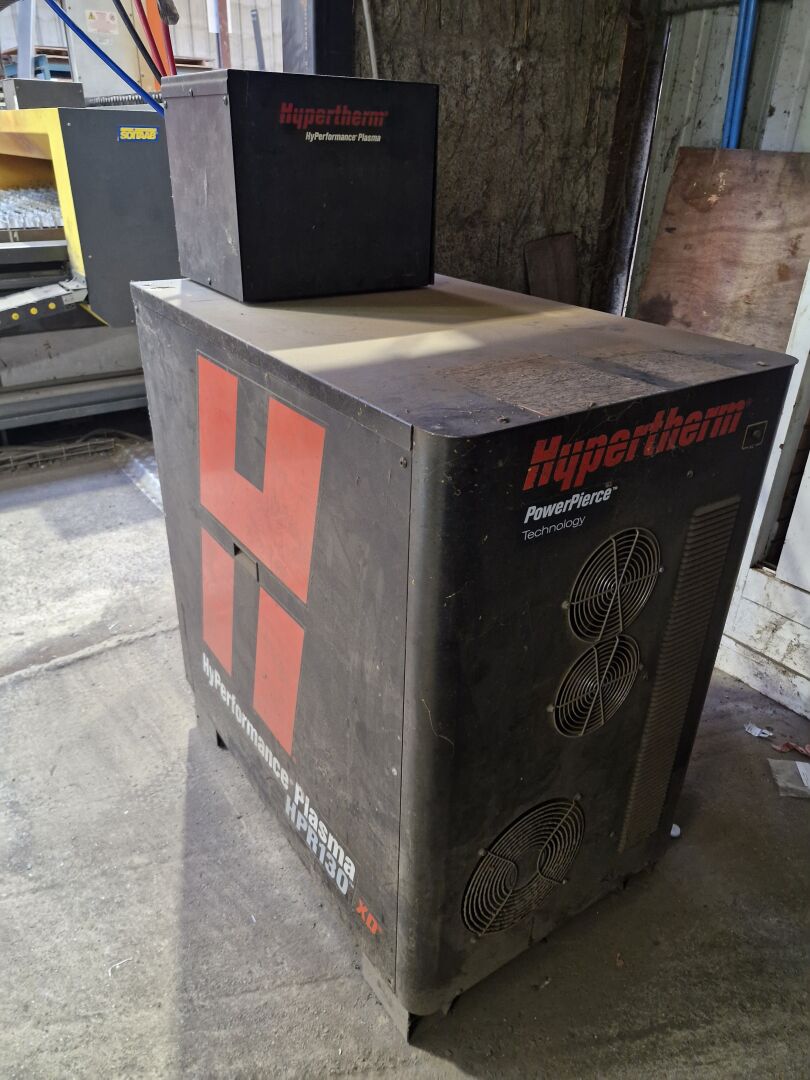 Vendu sur désignation le 13 01 2026 à 11h à DREFFEAC , visible sur RDV au LOROUX BOTTEREAU , enlèvement sur RDV avec le bailleur avant fin janvier 2026 1 découpeur plasma SOITAAB by ECS (4000x2000 mm) -Matériel incomplet : carte numérique manquante, renvoyée pour diagnostic chez SOITAAB à Milan, Italie -Avec notice et avec : - générateur de plasma HYPERTHERM PowerPierce Hyperformance Plasma HPR130 XD, n°078180 - HPR000214 et console gaz n°HPRC501029 - 1 chariot DANS LE BUREAU ATTENANT : - 1 unité centrale HP Z220 Core i7 Windows 7 - 1 écran IIYAMA - 1 clavier - 1 souris - 2 imprimantes BROTHER - 1 switch D-Link - 1 bureau métal - 1 chaise DANS LA RESERVE A LA SUITE : NOTE : Cette partie de l'installation nécessite le démontage du bardage ainsi que la découpe d'un renfort métal (en lien avec le bailleur et sur rendez-vous. Pour cette partie de l'installation un délai supplémentaire pourra être accorder sans qu'il n'excède la fin du mois de janvier 2026) - 1 aspiration SIDEROS ECOLINE (2007) - 1 refroidisseur FRIOLAIR ACT 8 - 1 compresseur de secours WORTHINGTON CREYSSENSAC Rollair 1500 - 1 cuve galva CORDIVARI 900L (2019) - 1 refroidisseur WORTHINGTON CREYSSENSAC CW4 - 1 lot d'outillage et consommables pour découpeur plasma SOITAAB (dans 2 armoires et sur une étagère)
