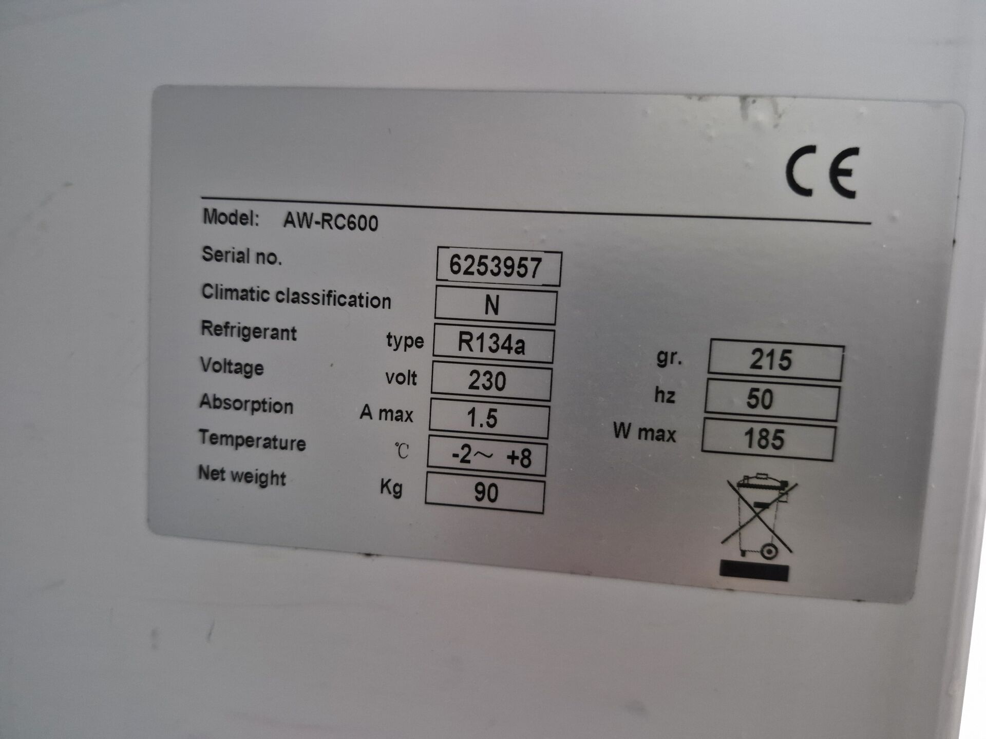 1 armoire froid positif L2G 80 x 75 x 190 cm
