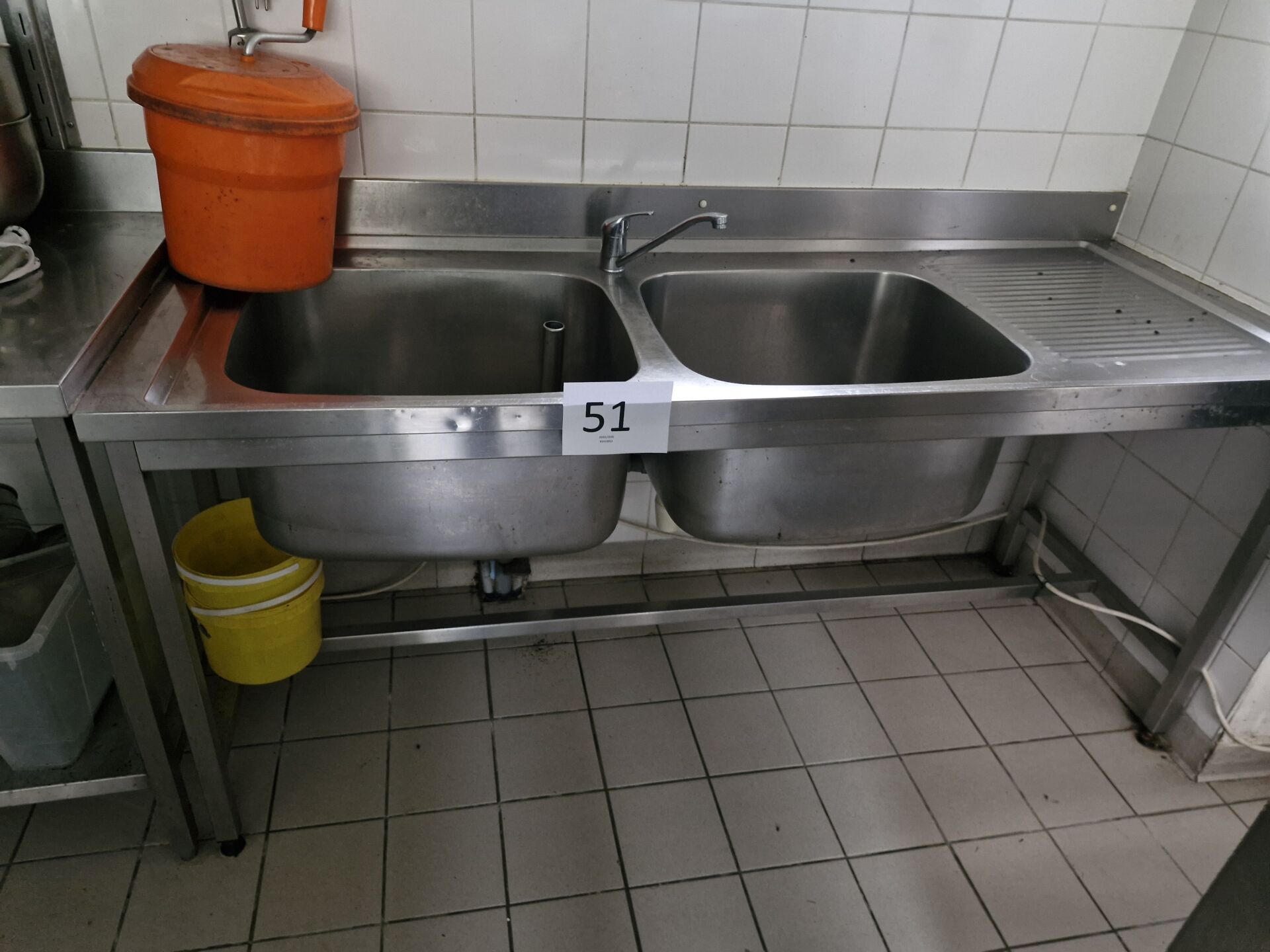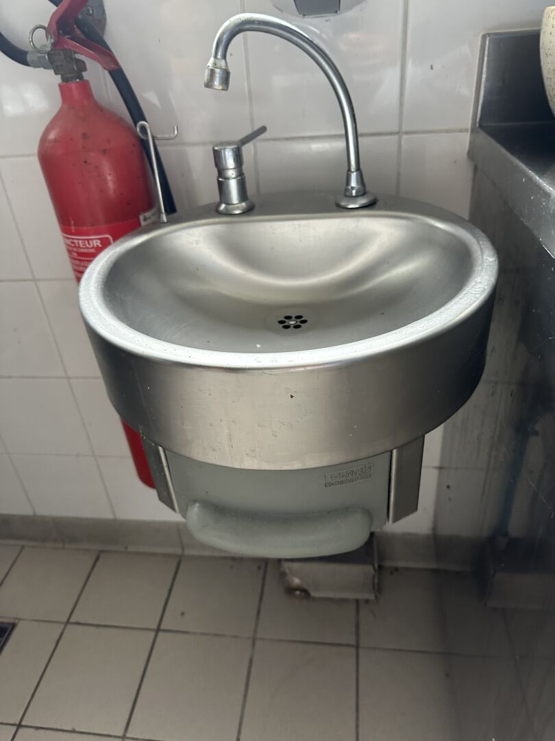1 lave-mains inox commande genou 1 plonge avec dosseret 2 bacs et égouttoir à droite (1900 x 670) à démonter proprement, en respectant l'étanchéité , prévoir pose de bouchons de plombier