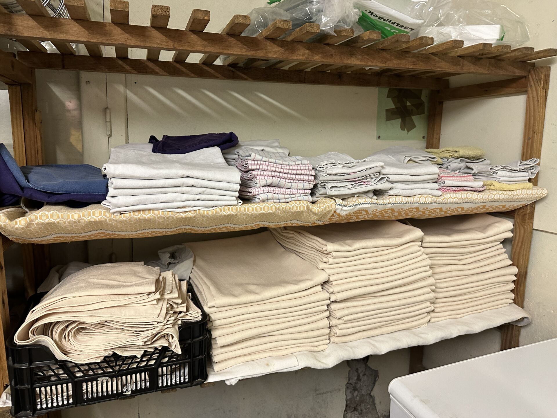 1 lot de nappes et serviettes crème (environ 40) pour table 2 couverts + torchons et chiffons