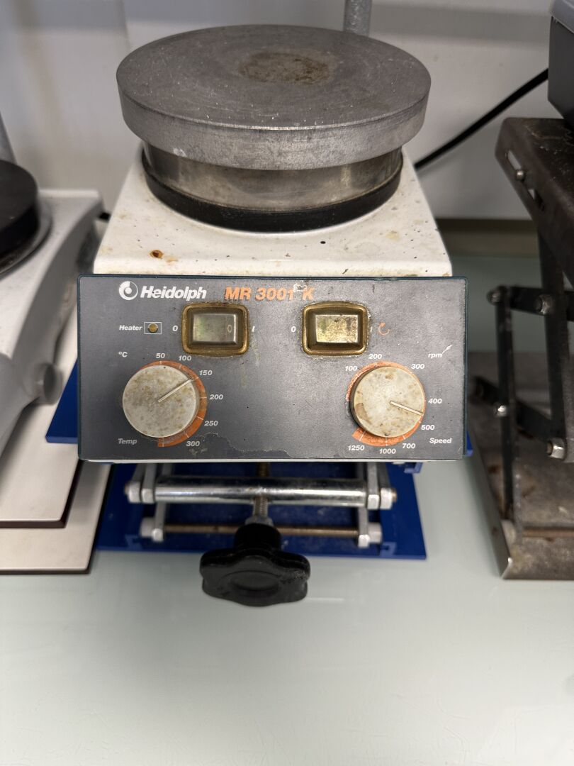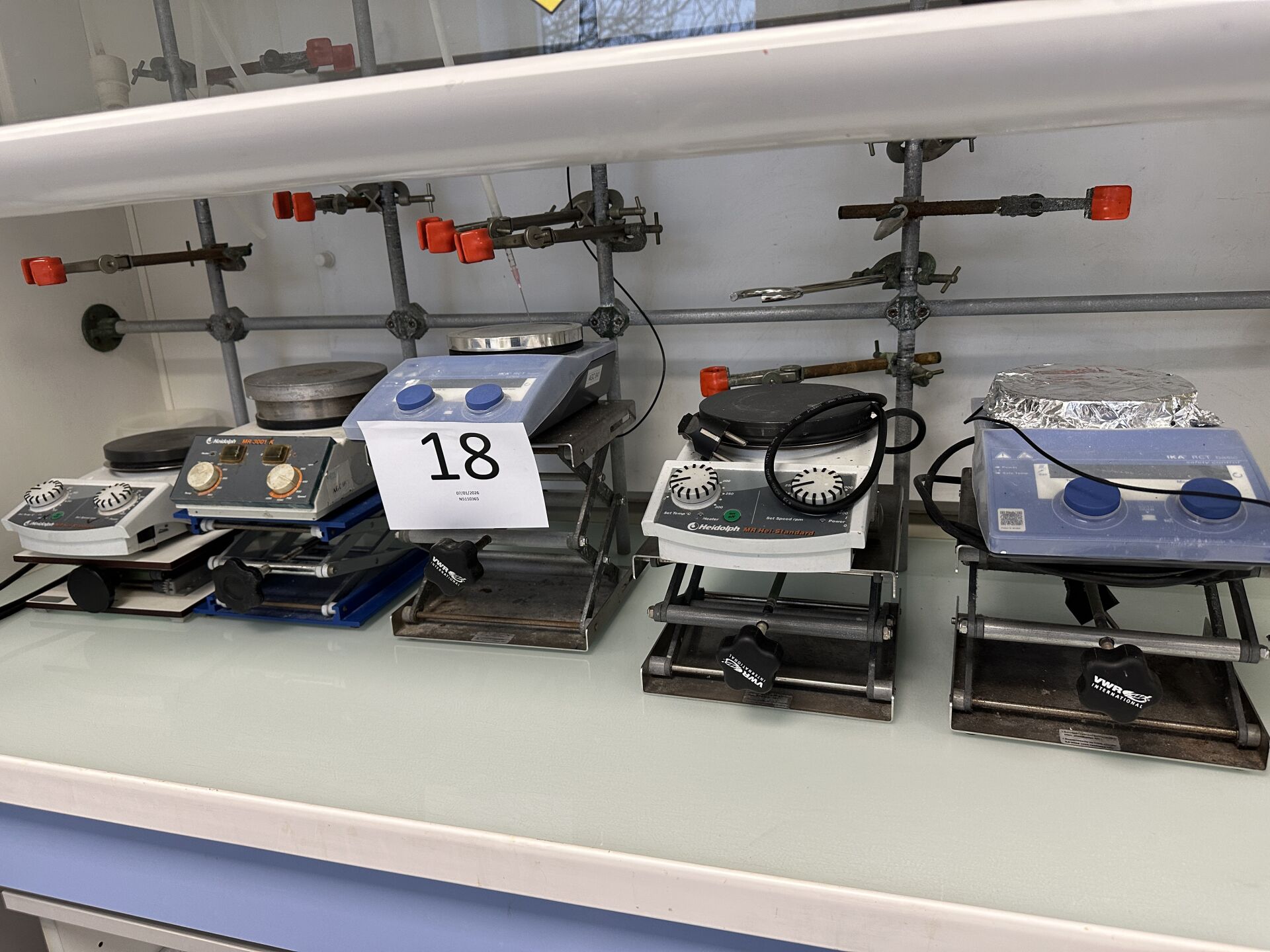 Vendu sur désignation le 7 Janvier 2026 à 11h 24 rue du marché commun 44300 Nantes, visible sur RDV le 07 01 2026 à 9H à ST HERBLAIN (44800), Enlèvement le 14 01 2026 à 9H sur RDV avec la STEM , Frais de mise à disposition 10 € TTC par lot 1 ensemble de 5 agitateurs magnétiques : 2 chauffants : HEIDOLPH Mr Hei - Standard , 1 HEIDOLPH MR 3001 K et 2 IKA RCT Basic, sur leur support ciseaux réglables en hauteur