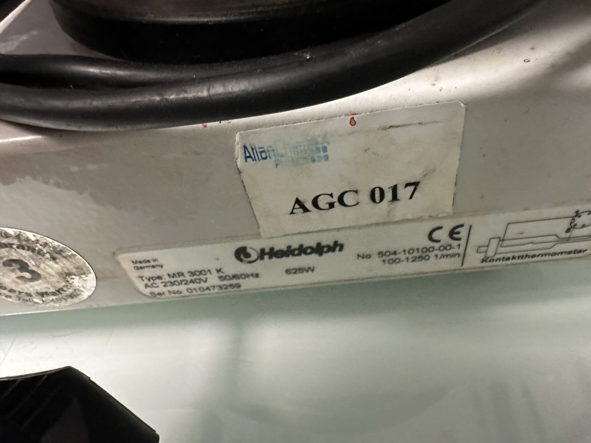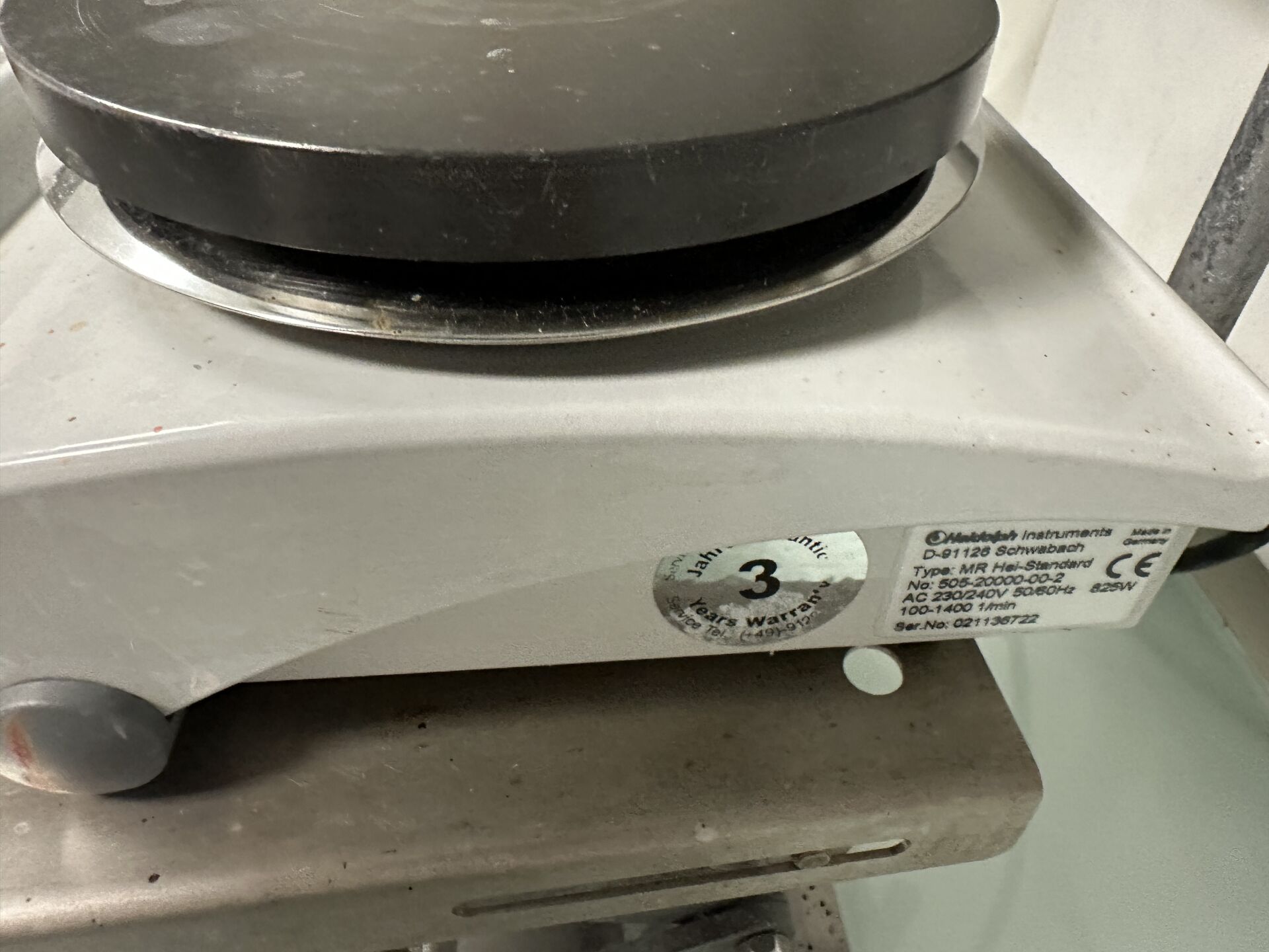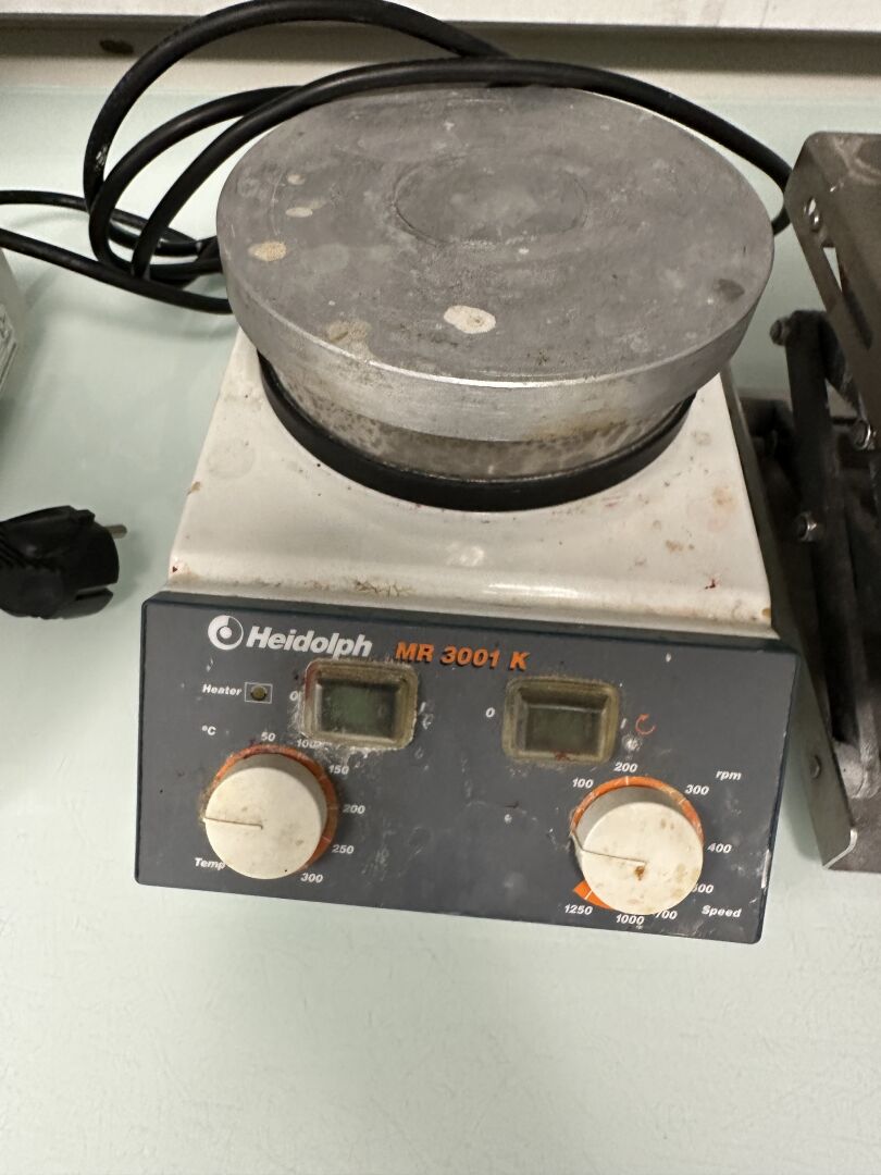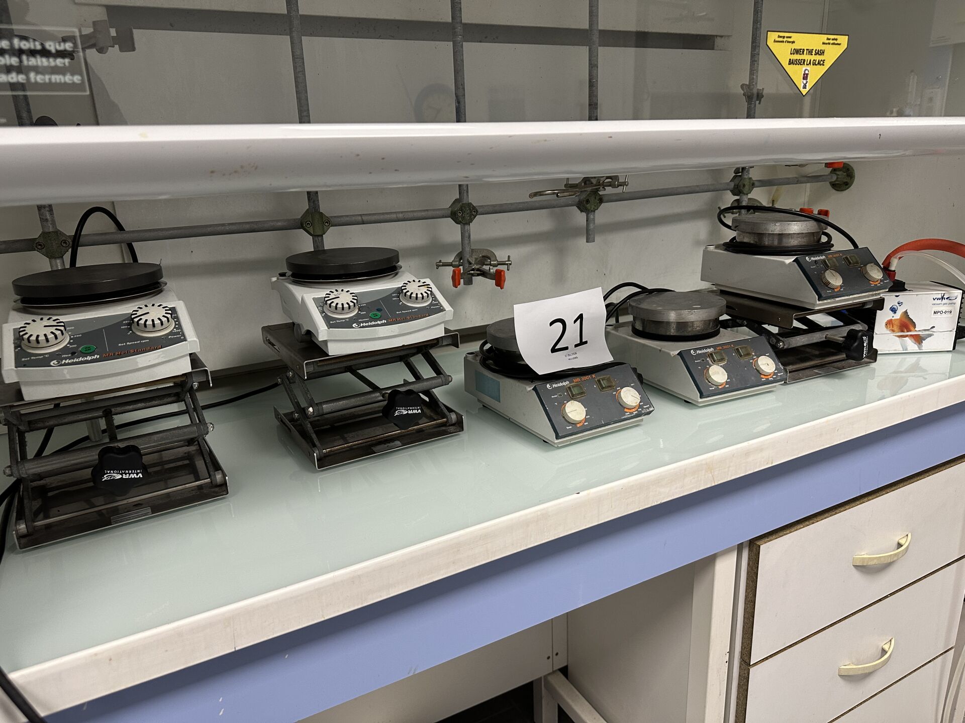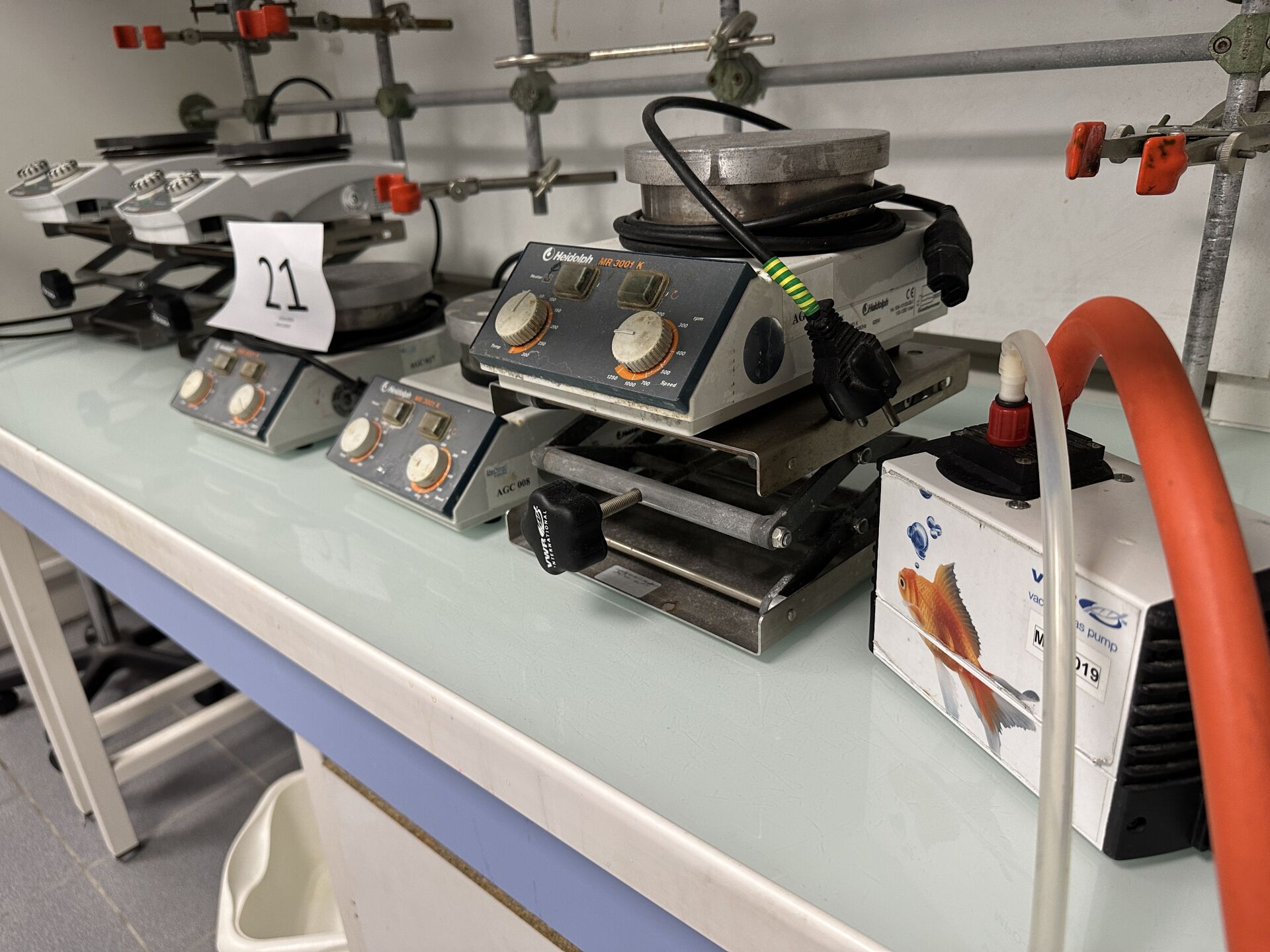 Vendu sur désignation le 7 Janvier 2026 à 11h 24 rue du marché commun 44300 Nantes, visible sur RDV le 07 01 2026 à 9H à ST HERBLAIN (44800), Enlèvement le 14 01 2026 à 9H sur RDV avec la STEM , Frais de mise à disposition 10 € TTC par lot 5 agitateurs magnétiques chauffants HEIDOLPH : -3 MR 30001 K et 2 MR HEI Standard 3 avec supports ciseaux réglables en hauteur + 1 mini-pompe à vide VWR