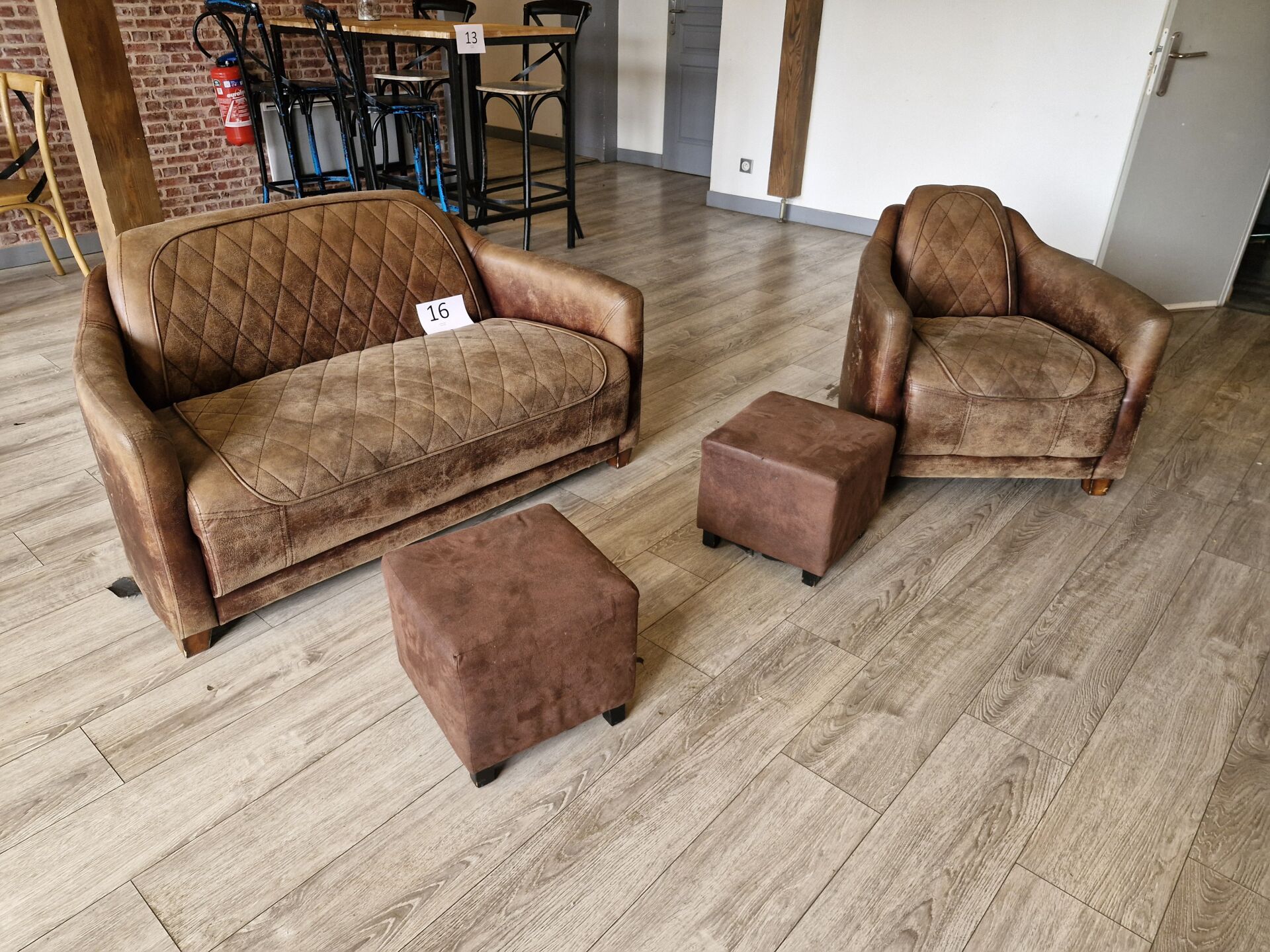 1 canapé 2 places simili cuir 1 fauteuil simili cuir 2 poufs simili cuir