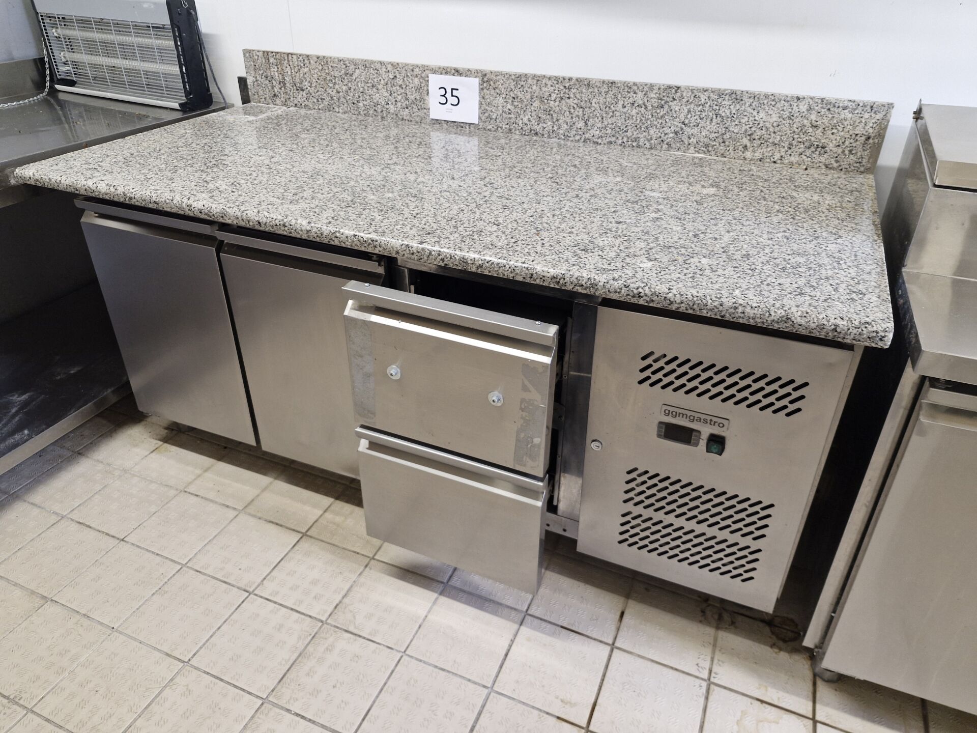 1 tour réfrigéré inox GGMGASTRO 2 portes 2 tiroirs 180 x 180 cm, 1 étagère inox murale 160 x 40 cm, 1 aimant