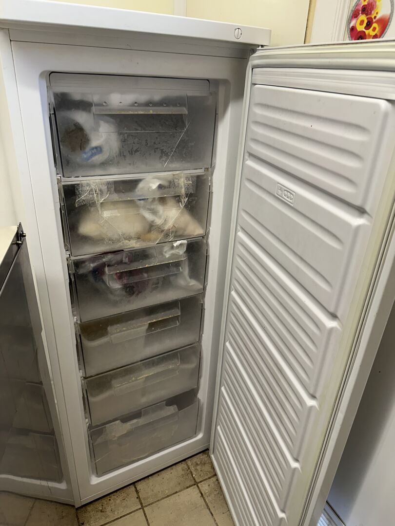 1 congélateur à tiroirs 57 x 57 x 142 cm (avec contenu de denrées alimentaires)