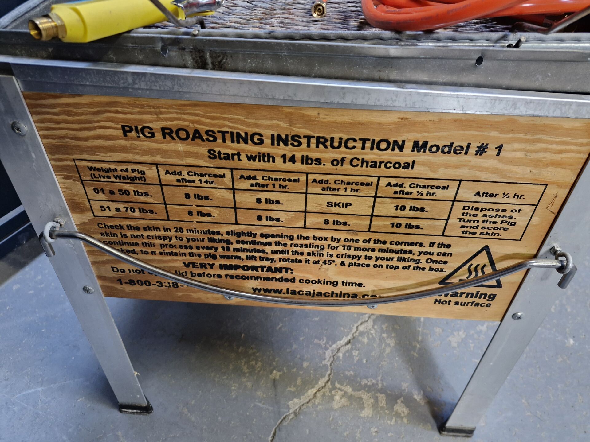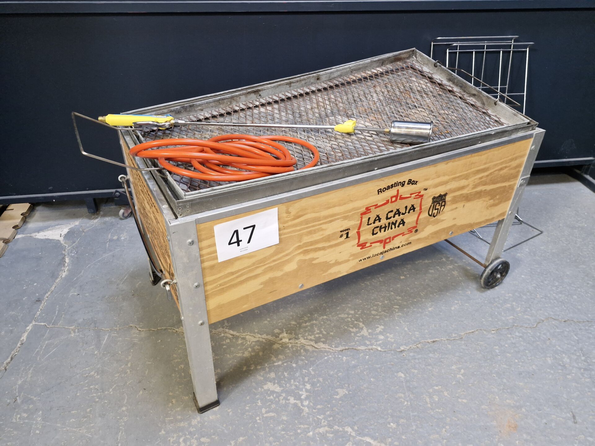 1 rôtissoire à cochon à charbon mobile LA CAJA CHINA 116 x 64 cm + 1 bruleur GLORIA THERMOFLAMM (état neuf)