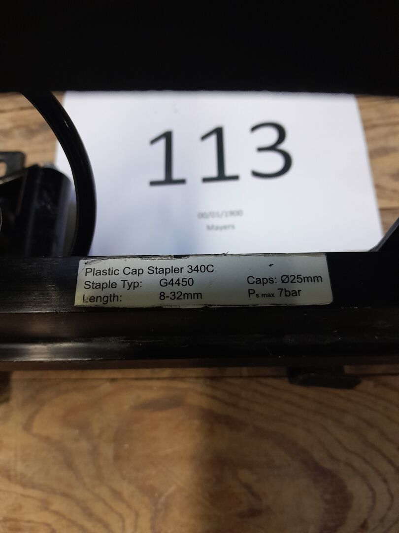 1 agrafeuse pneumatique pour rondelles en plastique modèle 340 C de marque BEA Dimensions : 225 X 125 X 275 mm n/s 21030027