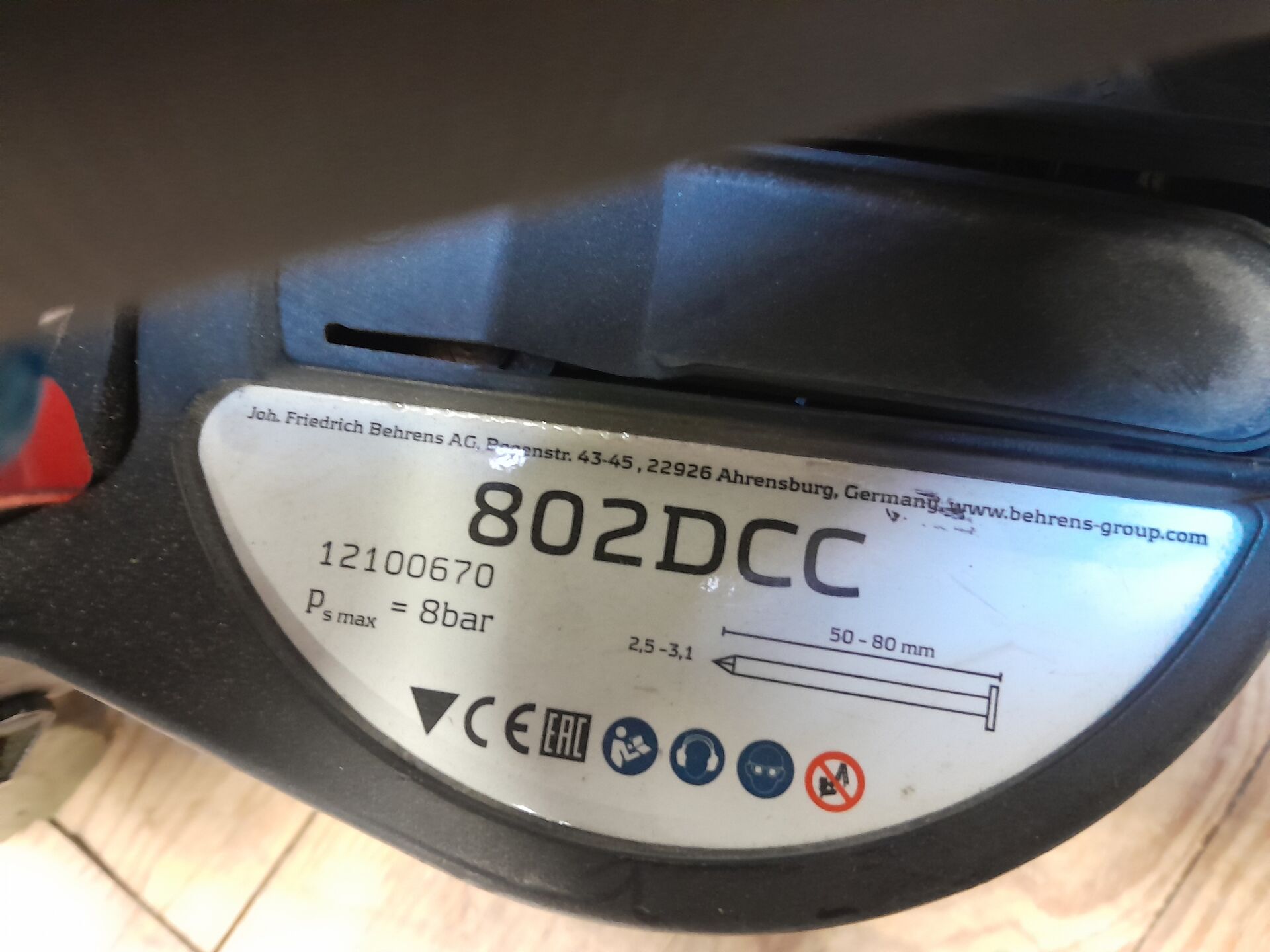 1 cloueur pneumatique pour bande à clous modèle 802DCC de marque BEA dimensions : 332 X 362 X 130 n/s 217619